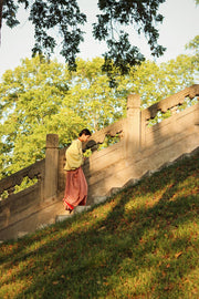 A daily Ming Dynasty shirt best suited for those chilly spring and autumn days, the Egg Yolk 熟蛋 Ming Dynasty Shirt is made from a thicker, denser fabric as compared to typical cotton summer hanfu.