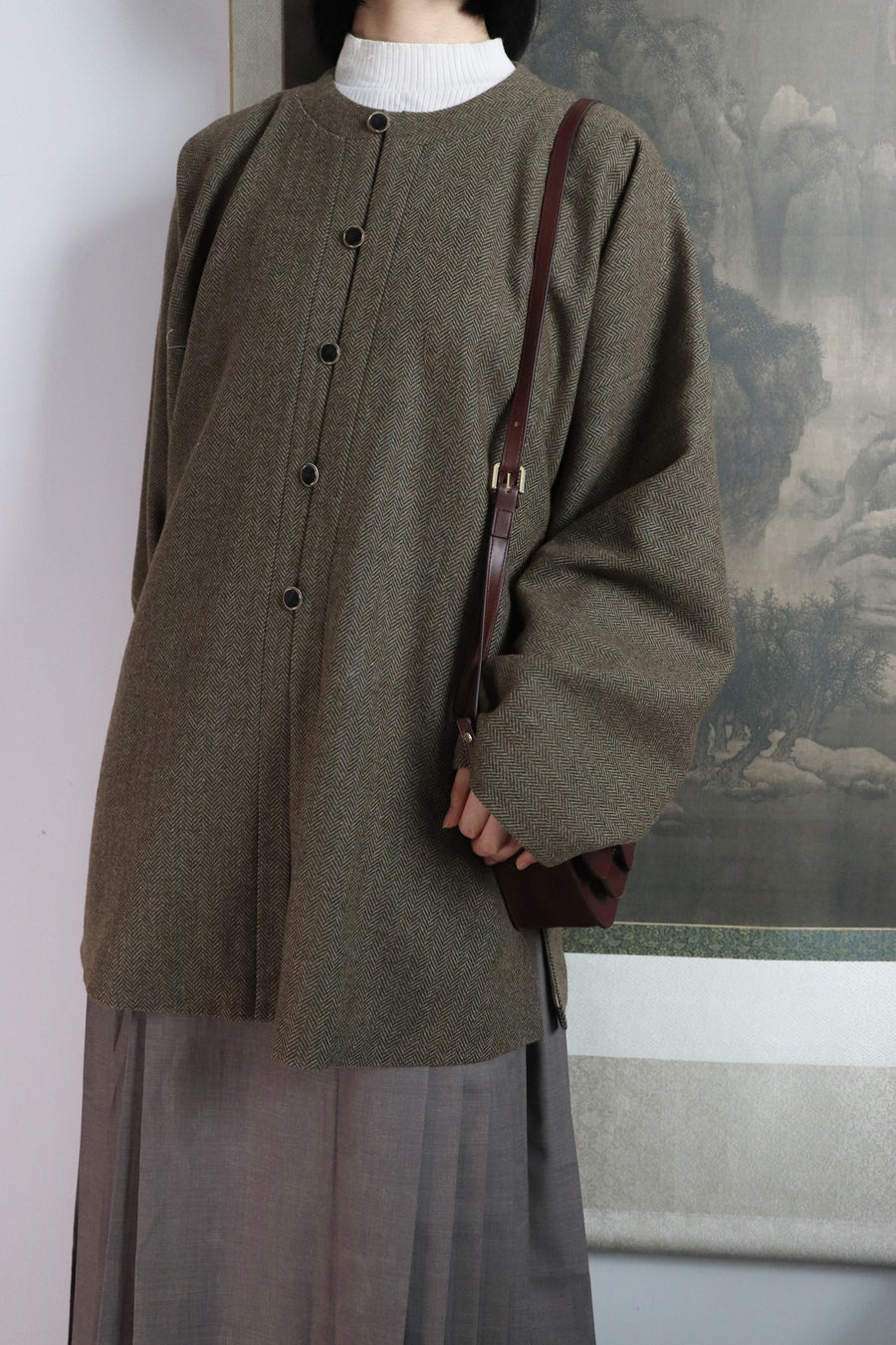 Based on the Yuanling Ao 圆领袄 (round collar jacket) from the Ming Dynasty. Updated with shiny buttons, plush woolen fabric, and fresh colorways.