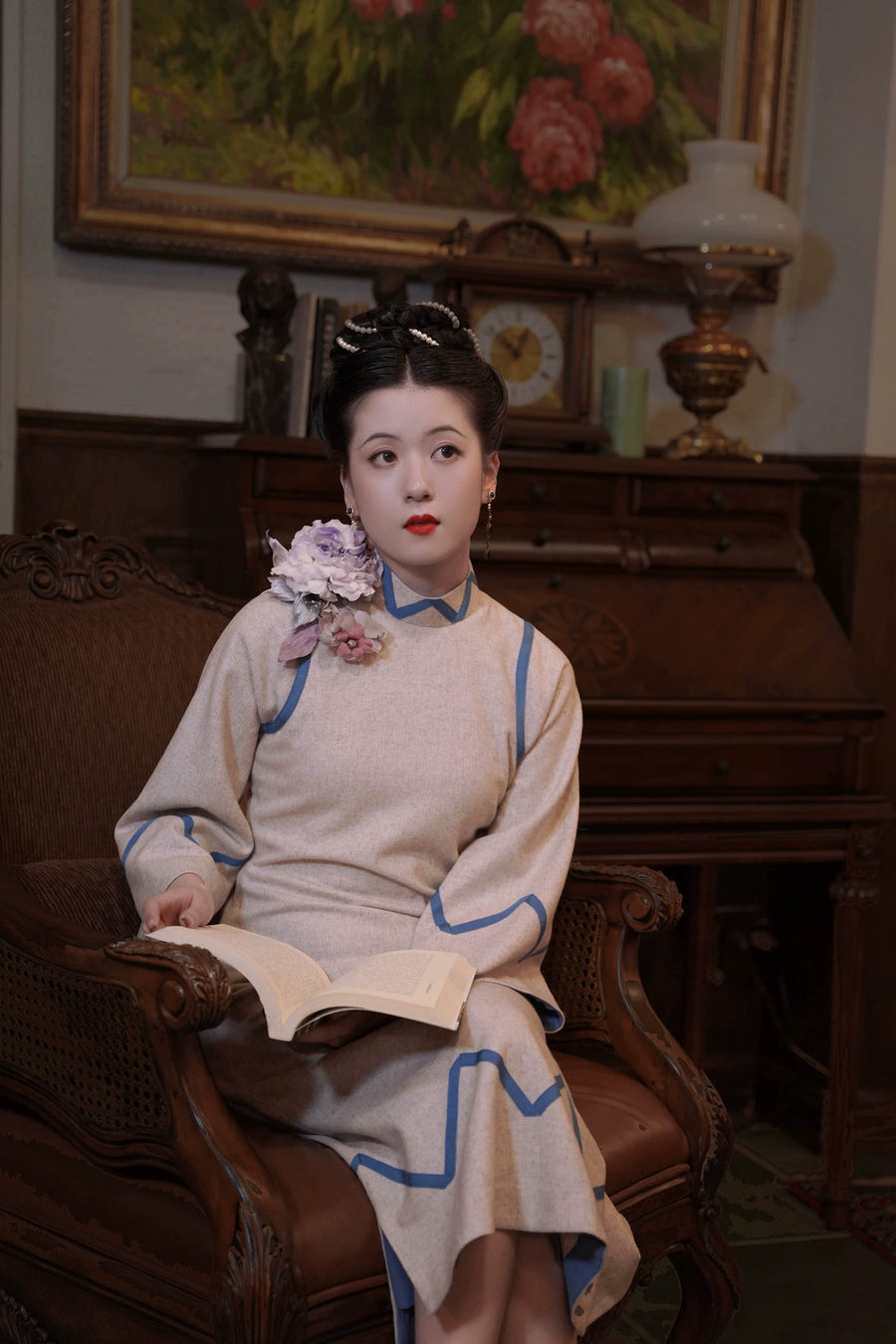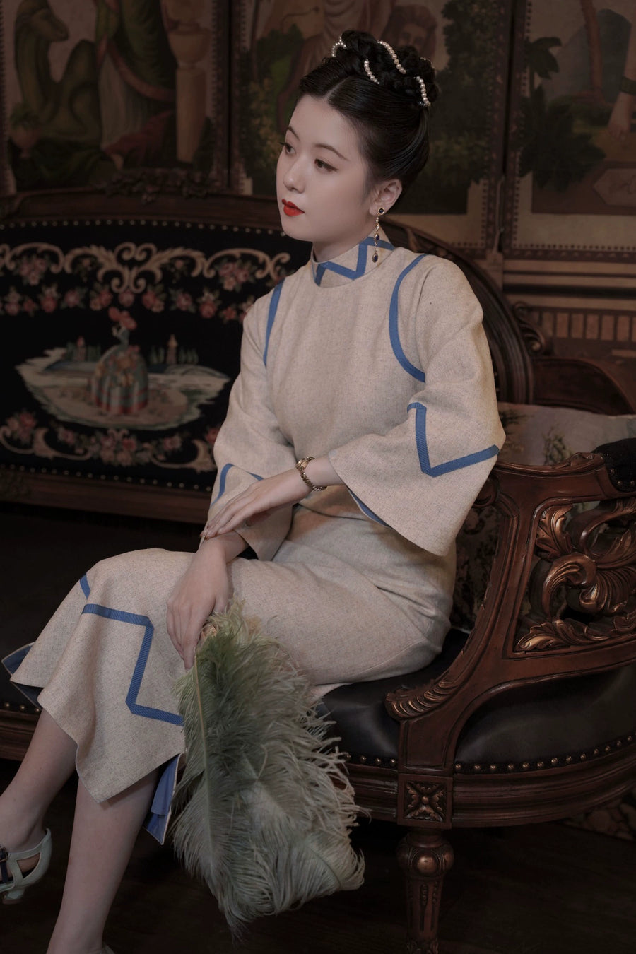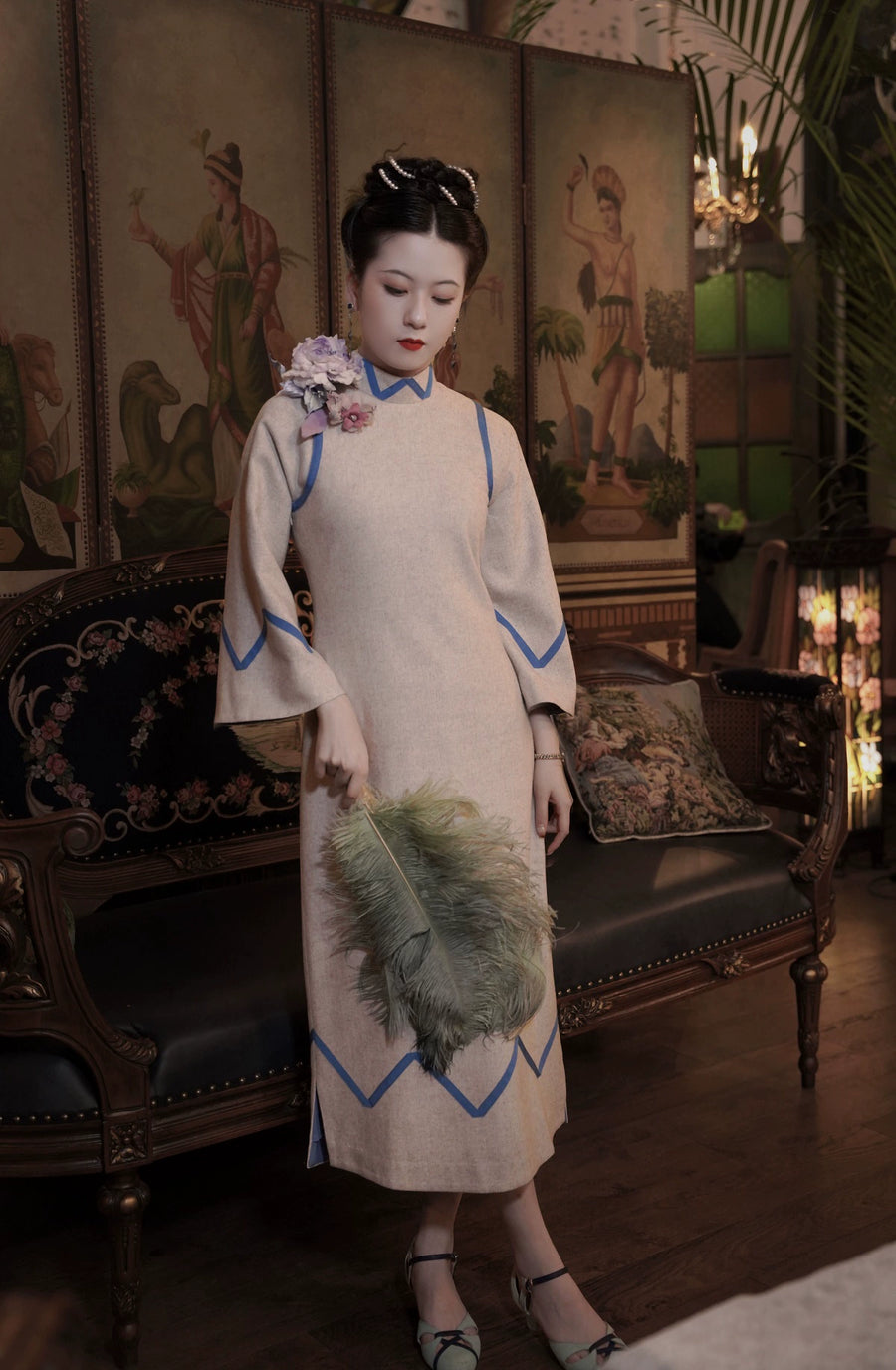 Folding Thoughts 折叠心事 1920s Wool Bottle Neck Qipao
