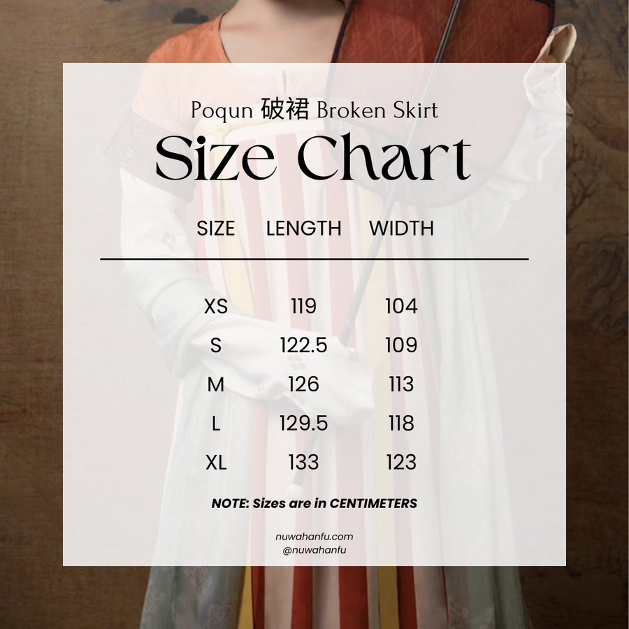 - Poqun 破裙, or "broken skirt". Made of 66 long strips of fabric sewn together to create the "broken" effect
