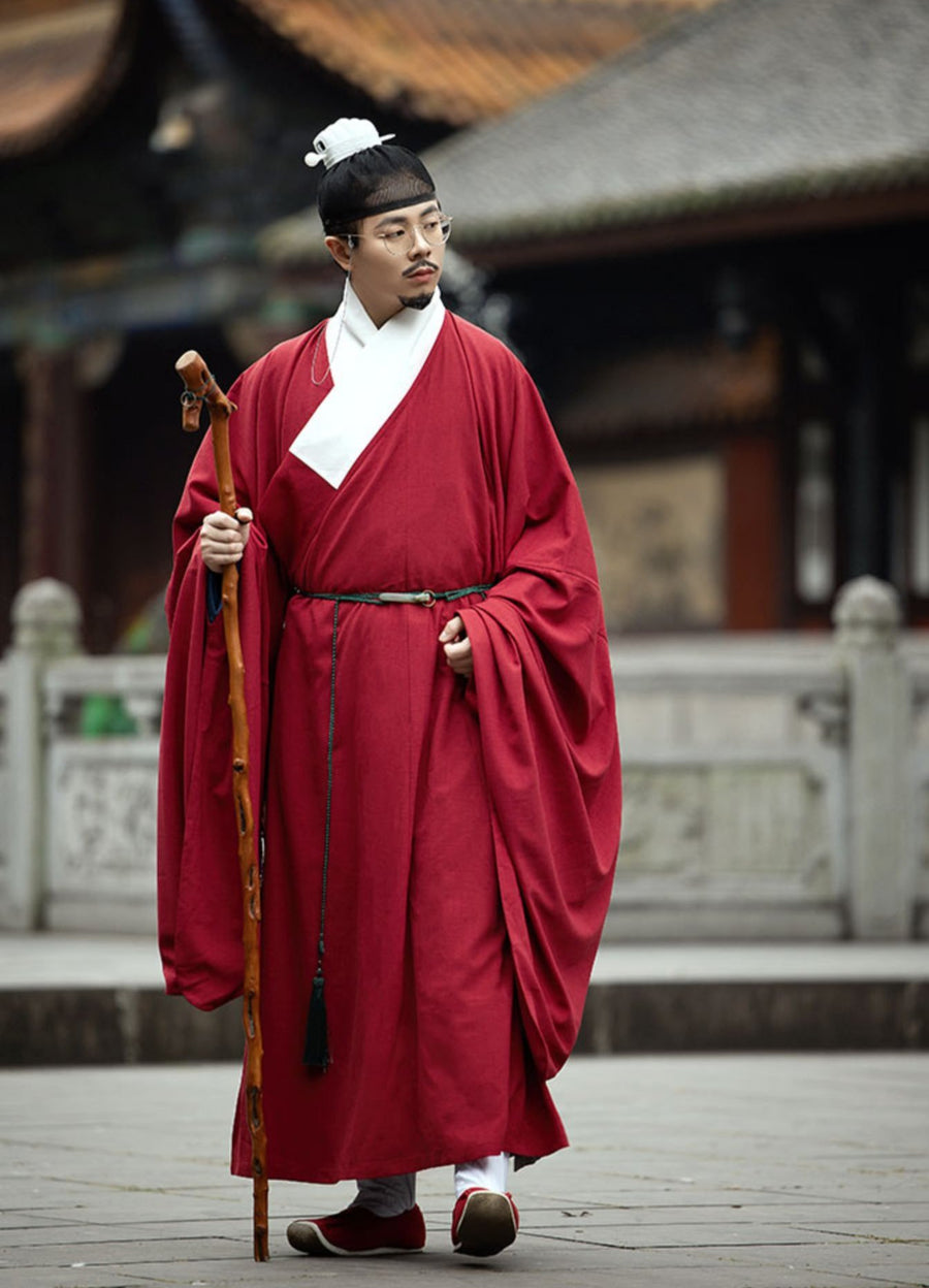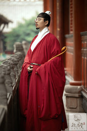 Hong Jiao 红蕉 Red Banana Ming Dynasty Men's Crossed Collar Pipa Sleeve Outer Pleating Robe