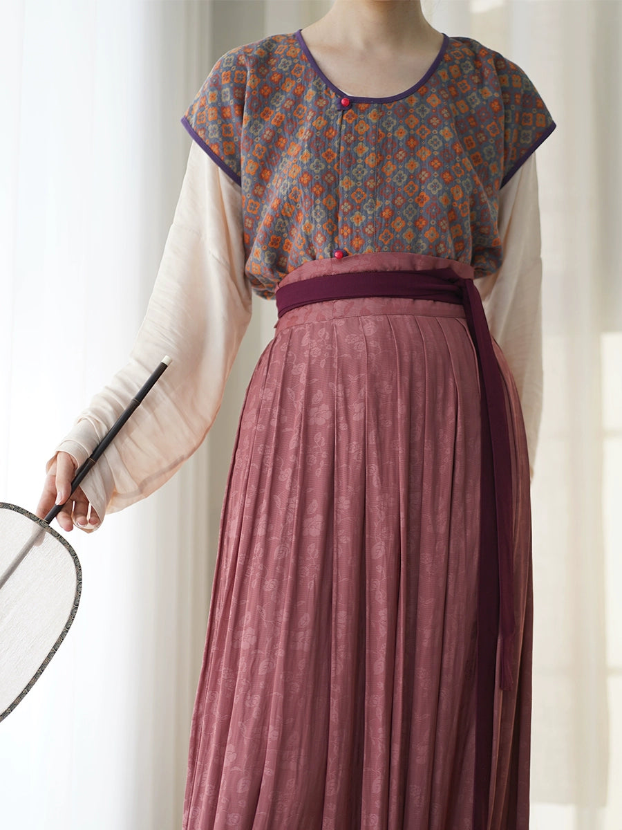 Jing Jie 荆芥 Cat Mint Early Tang Cotton Jacquard Banbi & Zhequn Skirt Ruqun Set