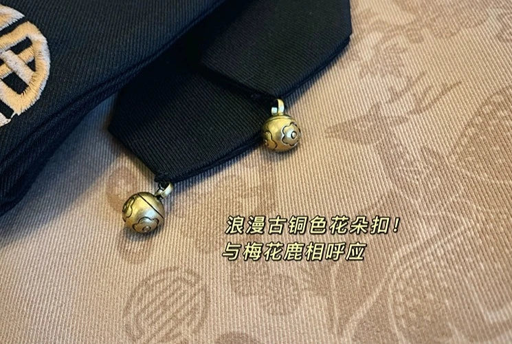 This piece is fully reversible, allowing you to switch up your look to suit any occasion. Featuring intricate, large mandala patterns adorned with serene deers amidst a mystical forest, the Kaqi 朱砂 Cinnabar Modernized Tang Dynasty Coat is effortlessly stylish for both modern and traditional outfits.