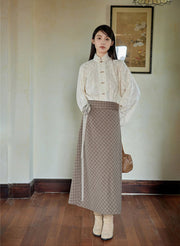 Lu Lu Lu 陆陆陆 New Chinese Style Cross Collar Knit Cardigan & Wrap Skirt Set