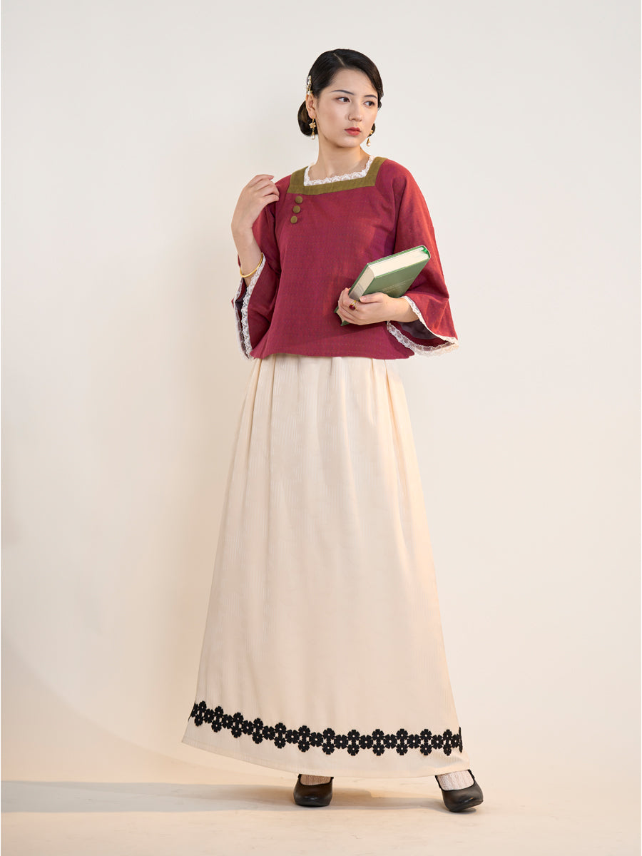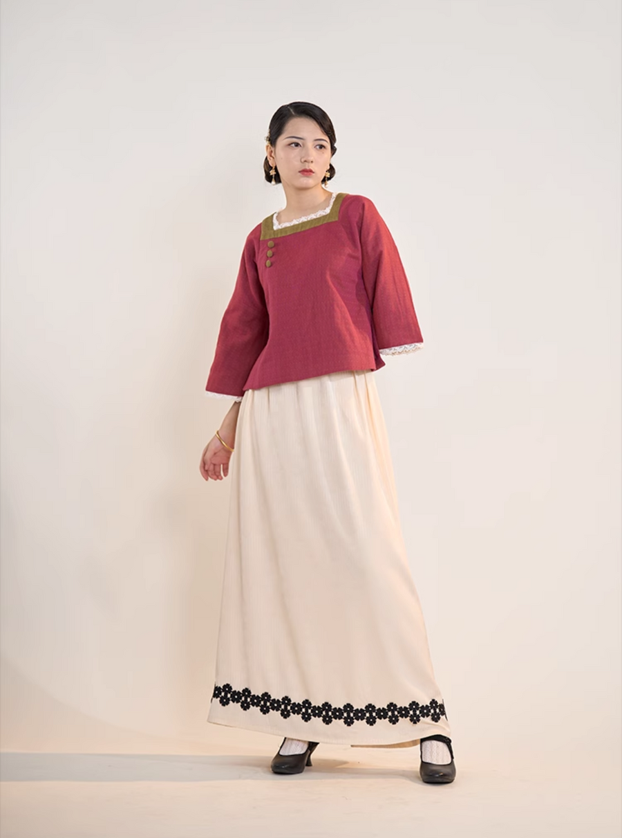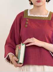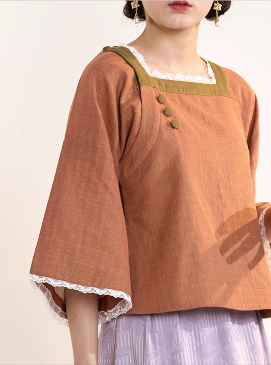 Meng Tan 梦田 Field of Dreams 1920s Restoration Square Collar Bell Sleeve Top