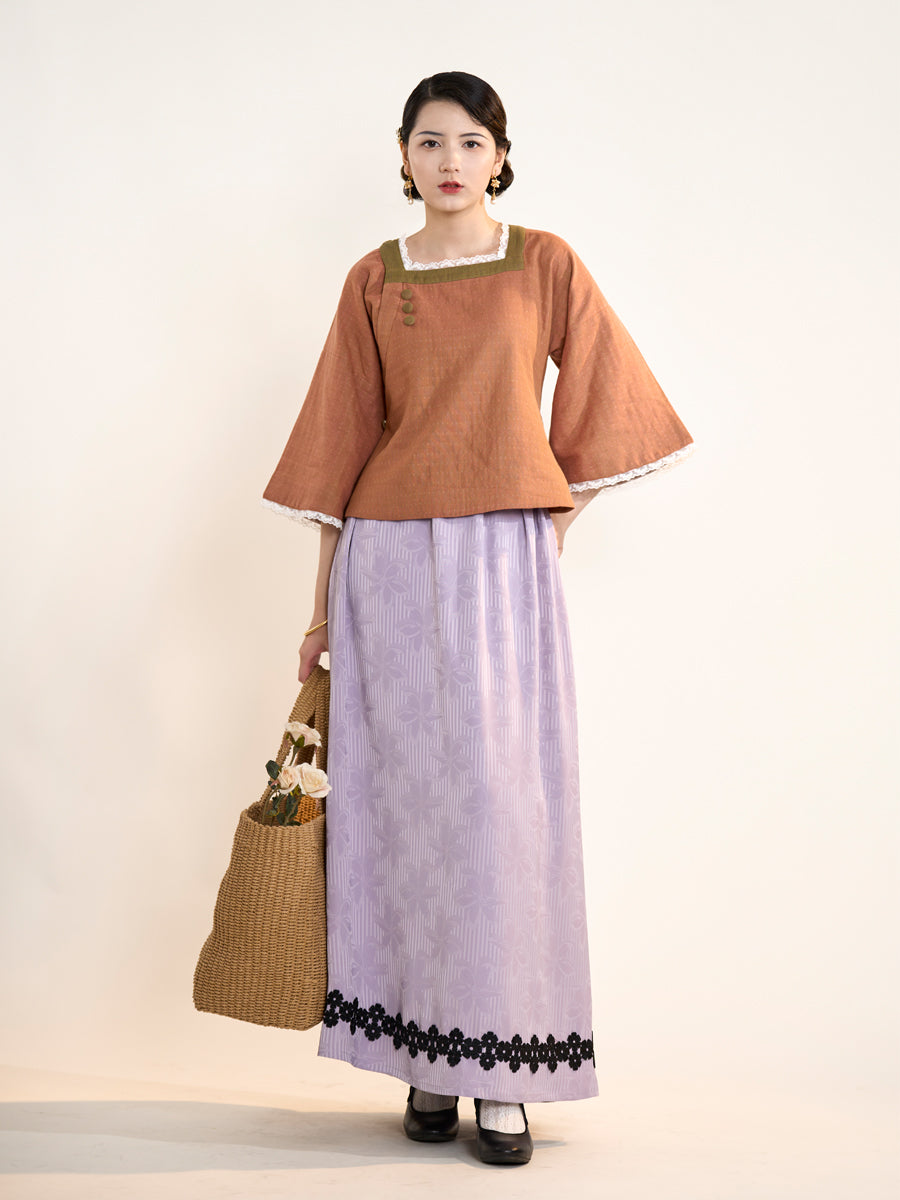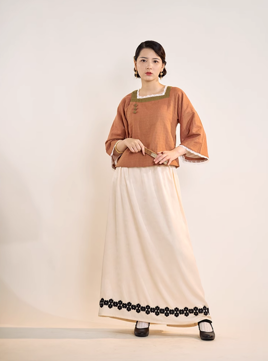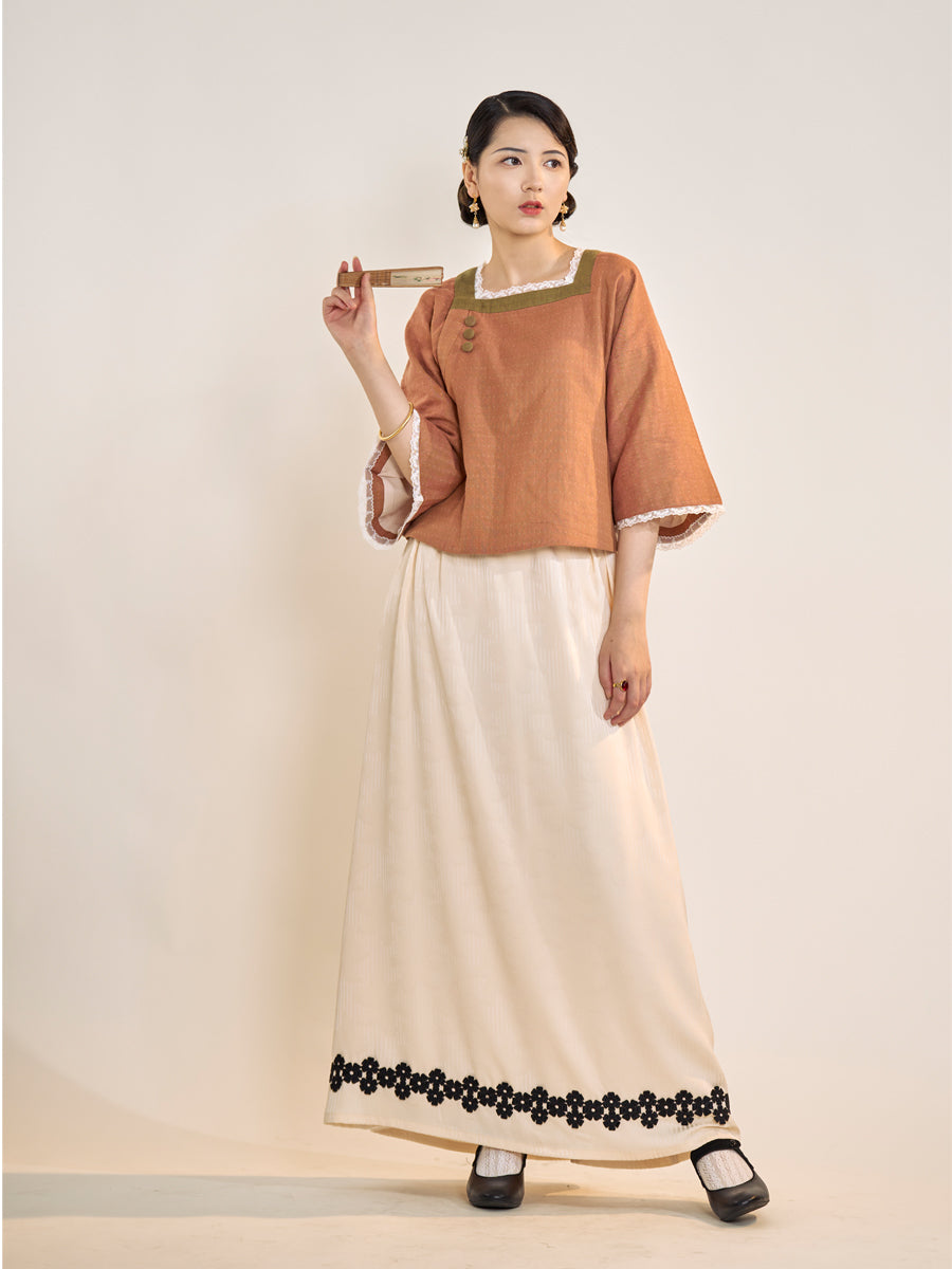 Meng Tan 梦田 Field of Dreams 1920s Restoration Square Collar Bell Sleeve Top