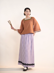Please hand wash carefully as to not ruin the embroidery, jewels, or buttons. Please air dry the clothes on a hanger. Hand washing and air drying also extends the life of your hanfu. For ironing, please use lowest heat setting or steam out the wrinkles.