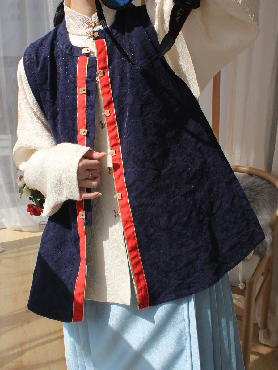 Ming Zhong 明中 Middle Ming Restoration Duan Bijia Short Navy Vest