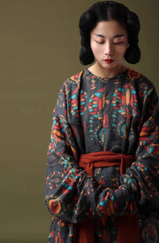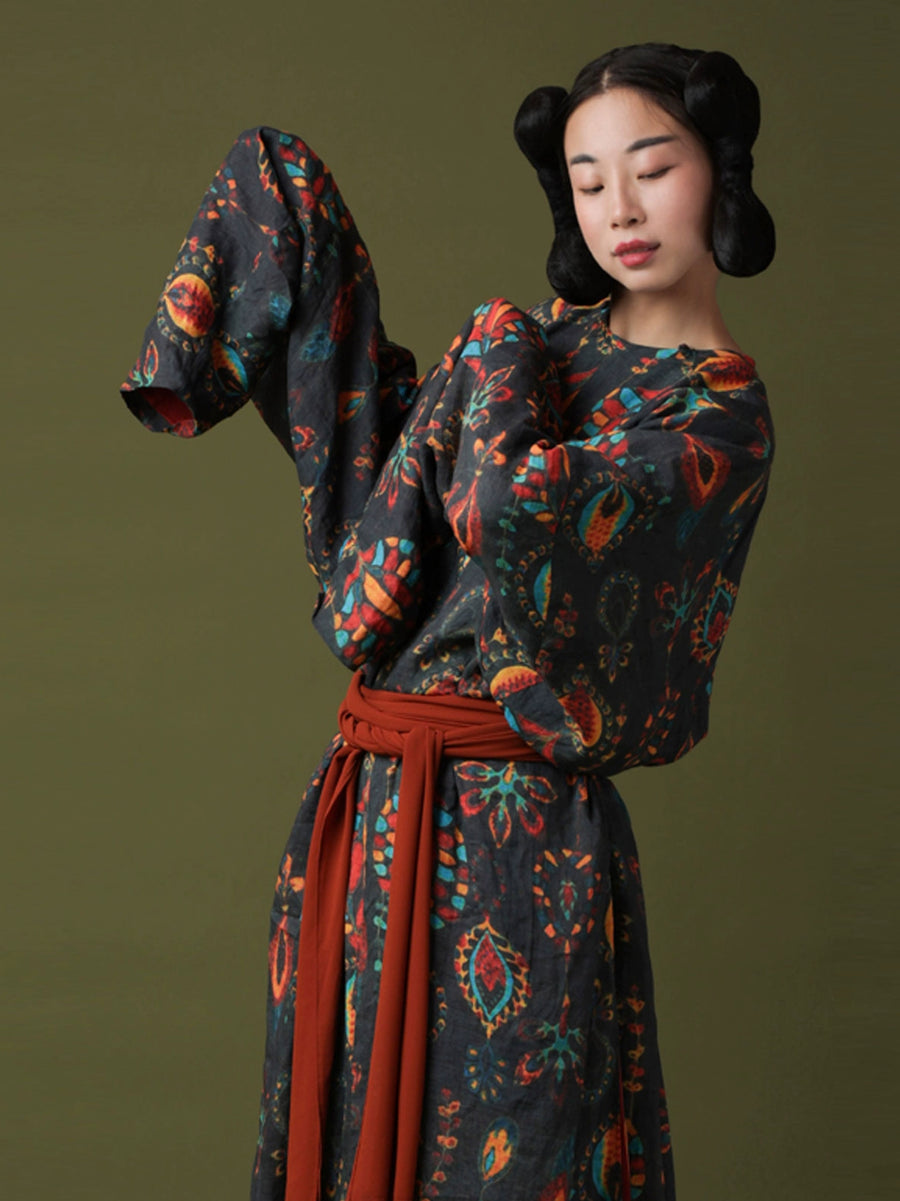 Made of natural ramie plant fabric, this traditional Yuanlingpao 圆领袍 (round collar robe) was a unisex garment worn by men and women of all classes during the Tang Dynasty.