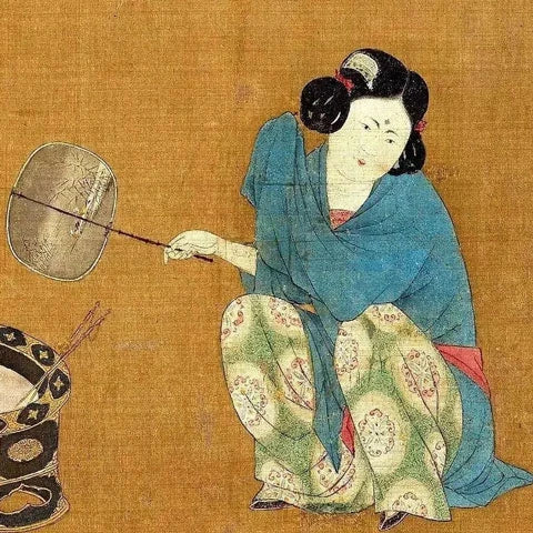 Beloved by men and women of the era, the Yuanlingpao 圆领袍 (round collar robe) was a comfortable, simple, and casual option for daily life. This particular set references the painting "Court Ladies Preparing Freshly Woven Silk" by Emperor Huizhong.