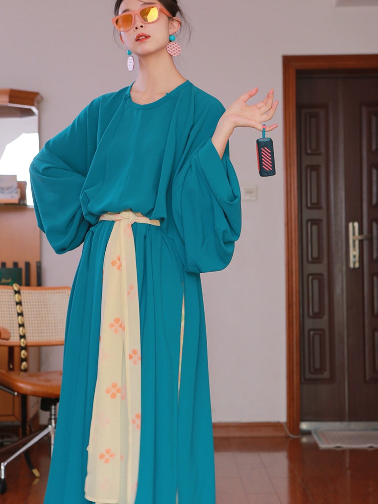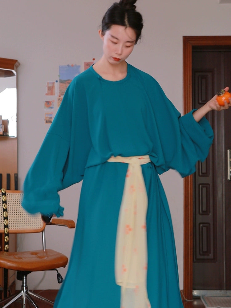 A color found in countless artworks and murals of the Tang Dynasty: this stunning lake blue was a favorite color of the 7th century, and now our favorite here at Nüwa Hanfu! Named after Poyang Lake in Jiangxi province, the Poyang 鄱陽 Yuanlingpao Round Collar Robe & Pants is the perfect blend of historical elegance and modern comfort.