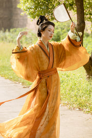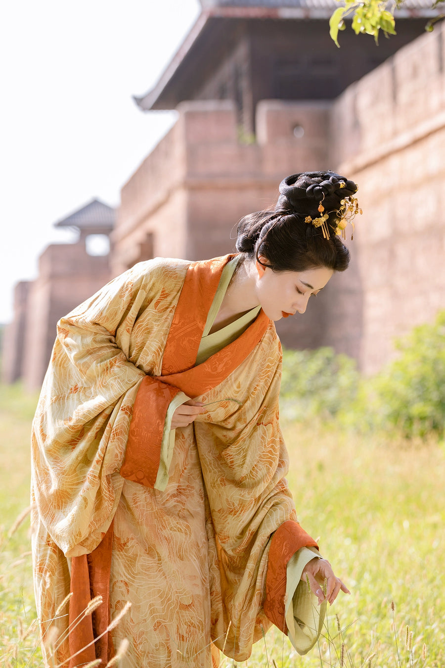 Based on Han Dynasty Zhiju 直裾, or "straight hem robes", the Qiu Se 秋瑟 Autumn Harp set is a brilliant reimagining of Han fashions.