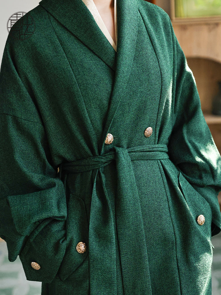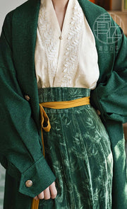The perfect winter coat for any Slytherin or fan of historically inspired outerwear! Inspired by the Zhiju 直裾 (straight hem robes) from the Han Dynasty, this fresh take on a classic garment is perfect for adding a touch of history to any ensemble.