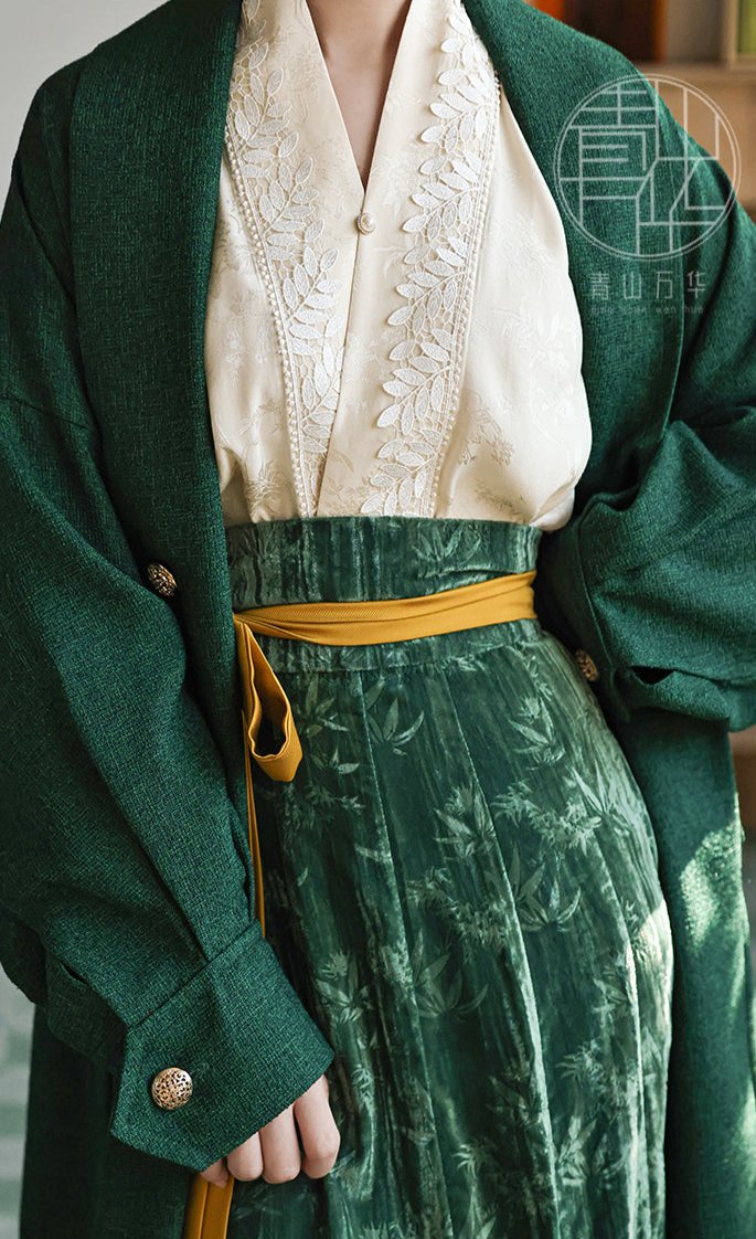 青山万华, or Qingshan Wanhua creates sophisticated and elegant interpretations on classic pieces. From Tang to Ming, they continue to impress with their contemporary designs. Every piece they release is perfect for day-to-night wear, office-ready outfits, and casual styles! One of the top Street Style Hanfu brands currently.
