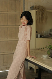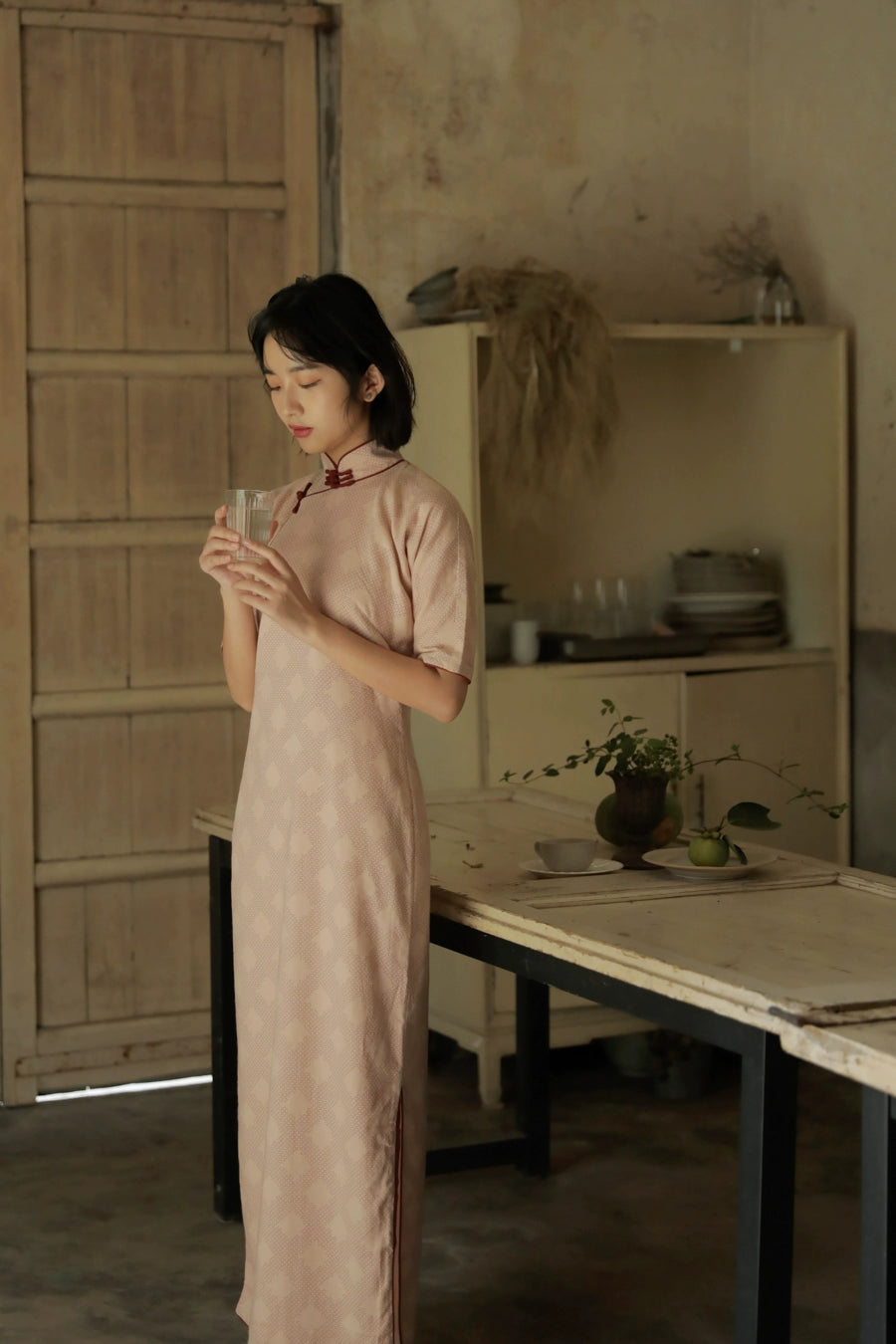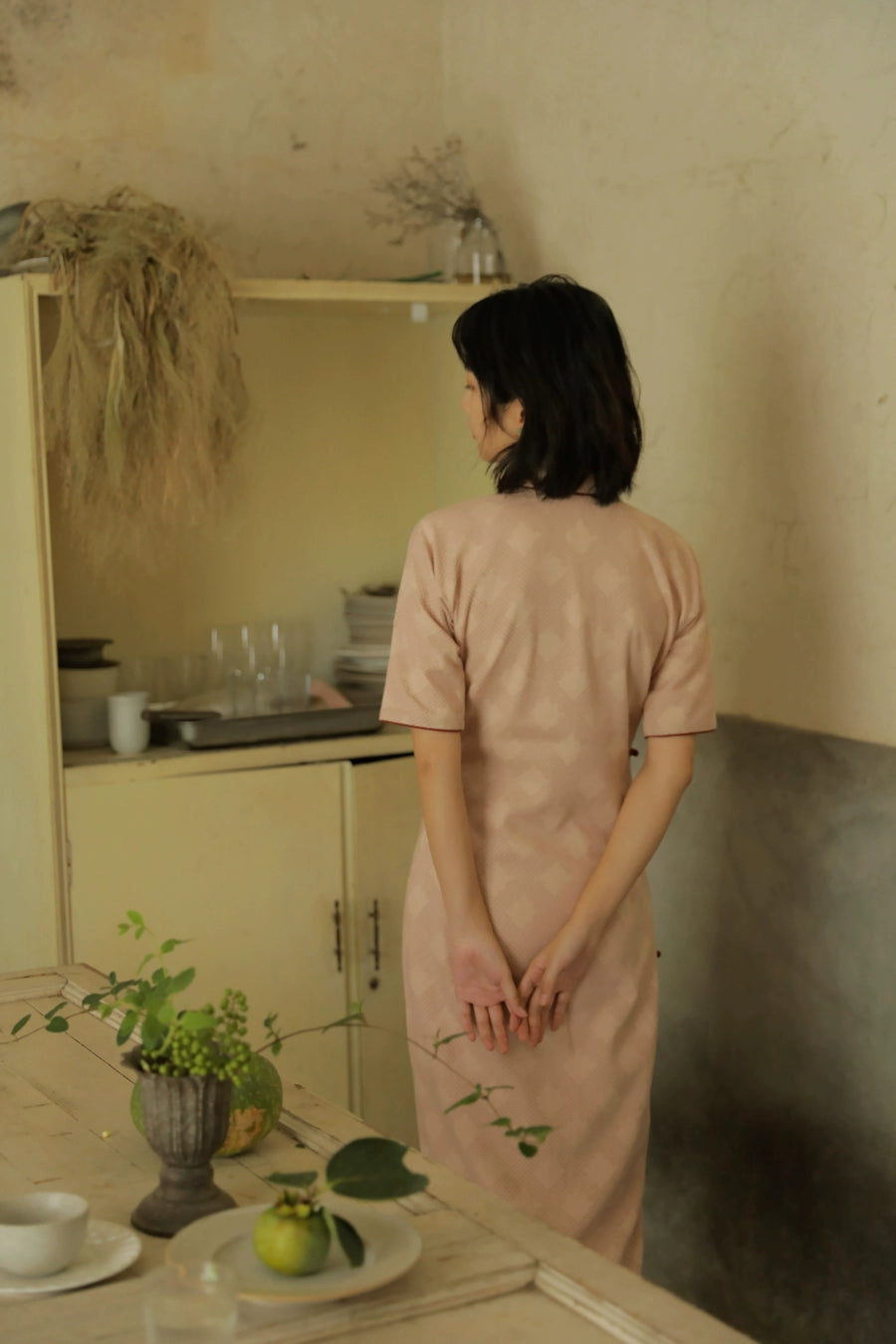 Tao Qi 桃蹊 Peach Path Linen & Cotton 1930s Half Sleeve Qipao