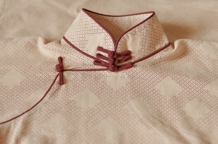 The Tao Qi 桃蹊 Peach Path Qipao is versatile piece for layering, or to wear on its own. The fabric is lightweight and breathable, made from a soft and luxurious linen and cotton blend.