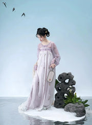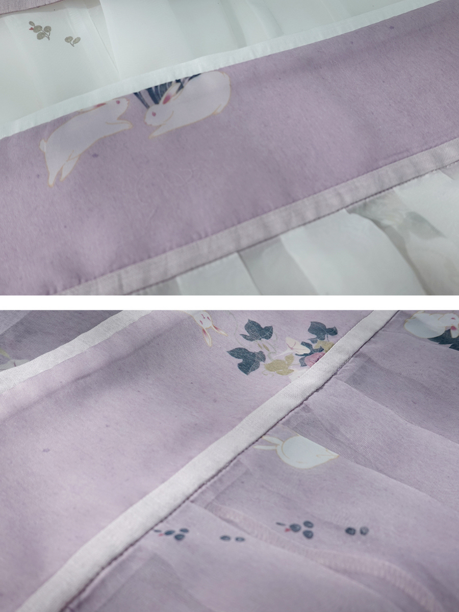 Quaint and sweet, the Tutu 兔兔 Rabbit Rabbit Qixiong Ruqun Set is inspired by the Jade Rabbit on the moon. Adorable rabbits run along the band of the skirt while the dress itself is covered with delicate floral motifs.