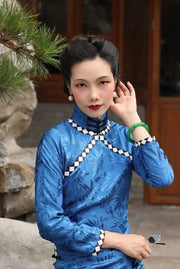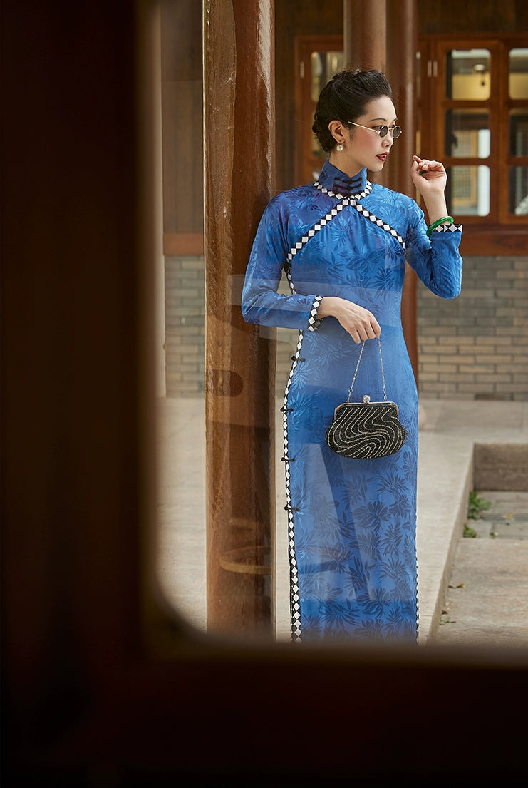 Untold Tales 尘封的故事 1940s Checker Print Satin Long Sleeve Qipao