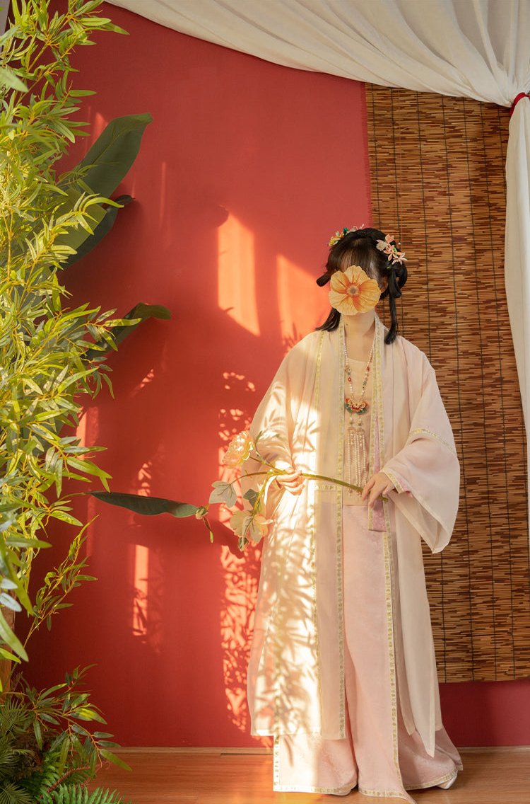 Layer over any combination of moxiong 抹胸 (tank top), duanshan 短衫 (short shirt), hedang ku 合裆裤 (crotchless wide leg pants), or baidiequn 百迭裙 (100 pleat skirt). The best part about Song Dynasty fashions is the layering possibilities!