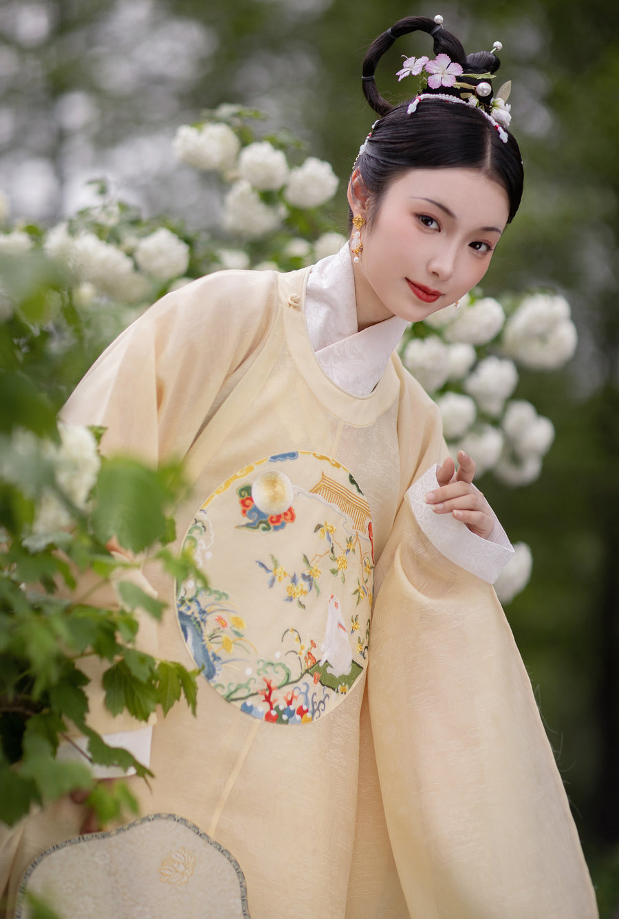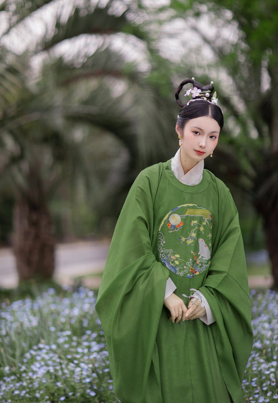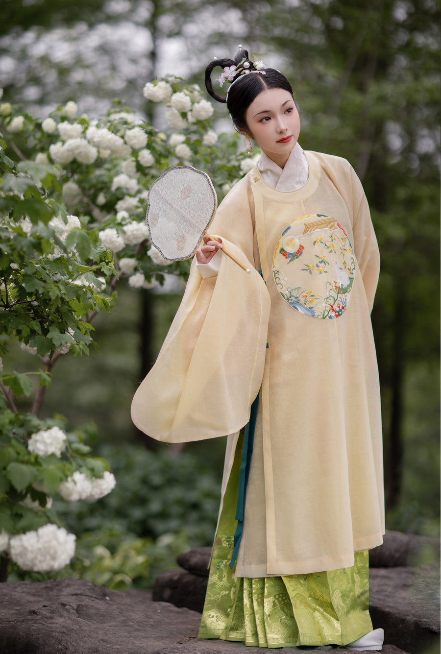The Yuanling Changshan 圆领长衫 (round collar long shirt) was a popular garment for men and women through the late middle Ming Dynasty. The return to round collara garments was a form of protest against the previous Yuan Dynasty's fashions, hence Song Dynasty garments, long sleeves, and long hems came back into popularity.