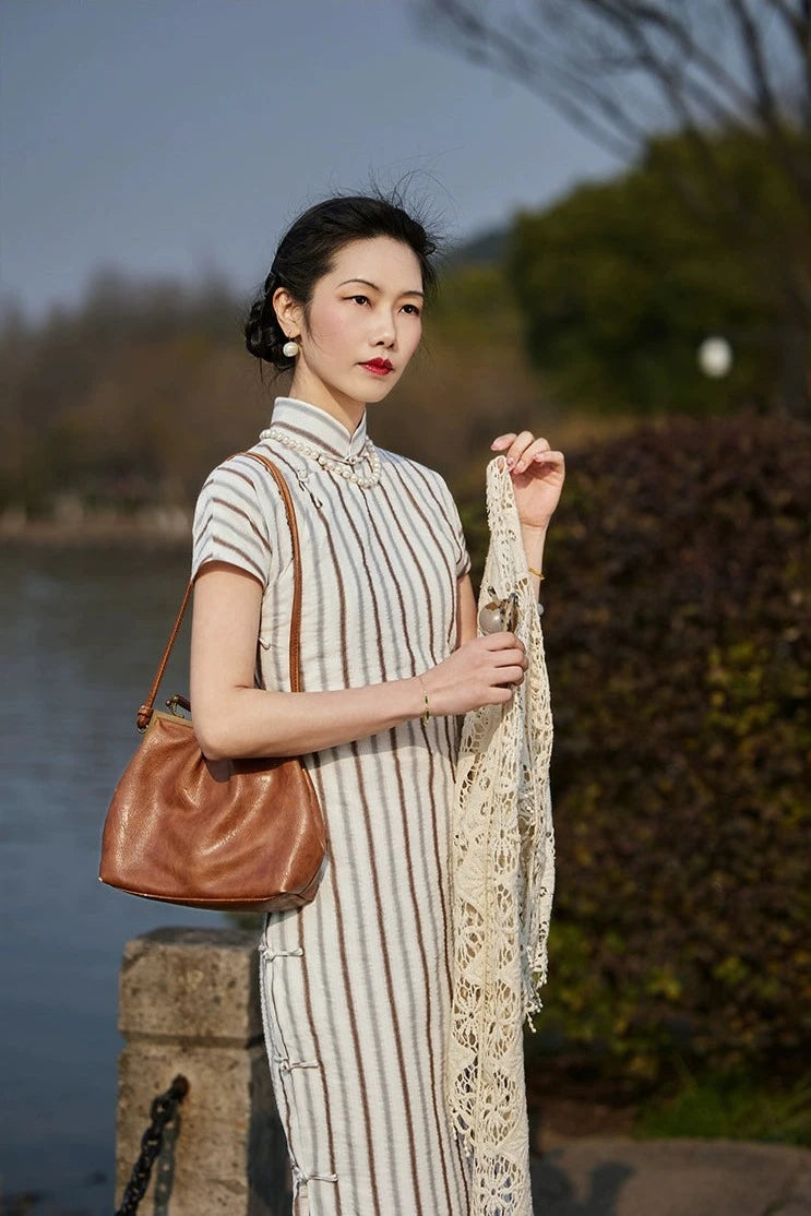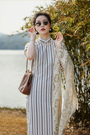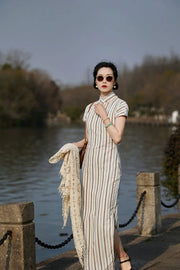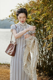 Whisper of the Heart 细語呢喃 1930s Summer Stripes Cotton Short Sleeve Qipao