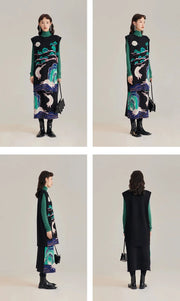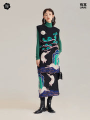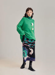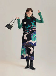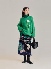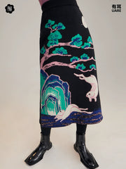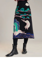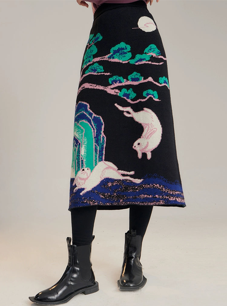 Xi Nao 嬉闹 Frolicking Rabbits New Chinese Style Knit Midi Skirt