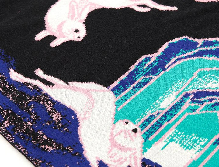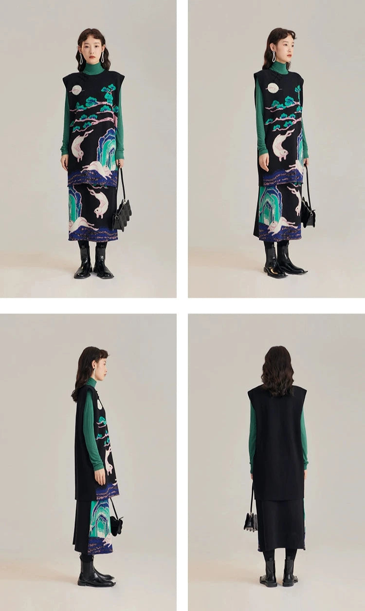 Adorable, lively, and fun 🐇 this knitwear midi skirt features rabbits frolicking beneath the moonlight. Traditional myths meet the colors of the 90s, this Xinzhongshi 新中式 (New Chinese Style) is perfect for expressing your love of Chinese aesthetics on a daily basis.