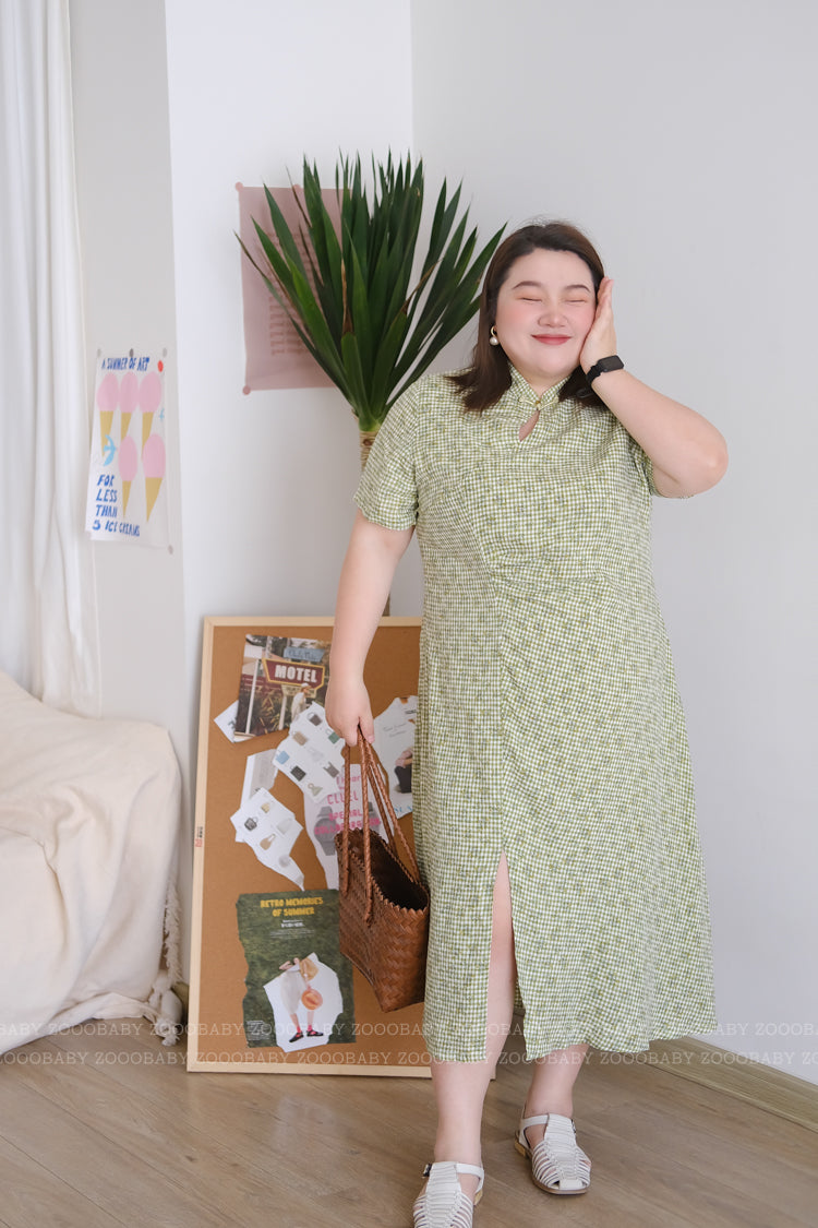 Xin Xian 新鲜 Fresh Gingham Modernized Plus Size Cotton Qipao