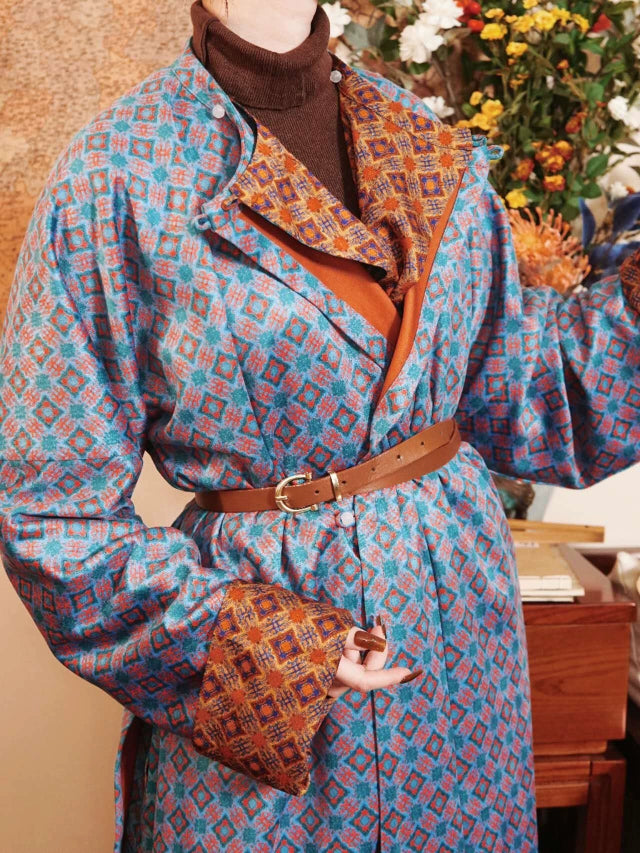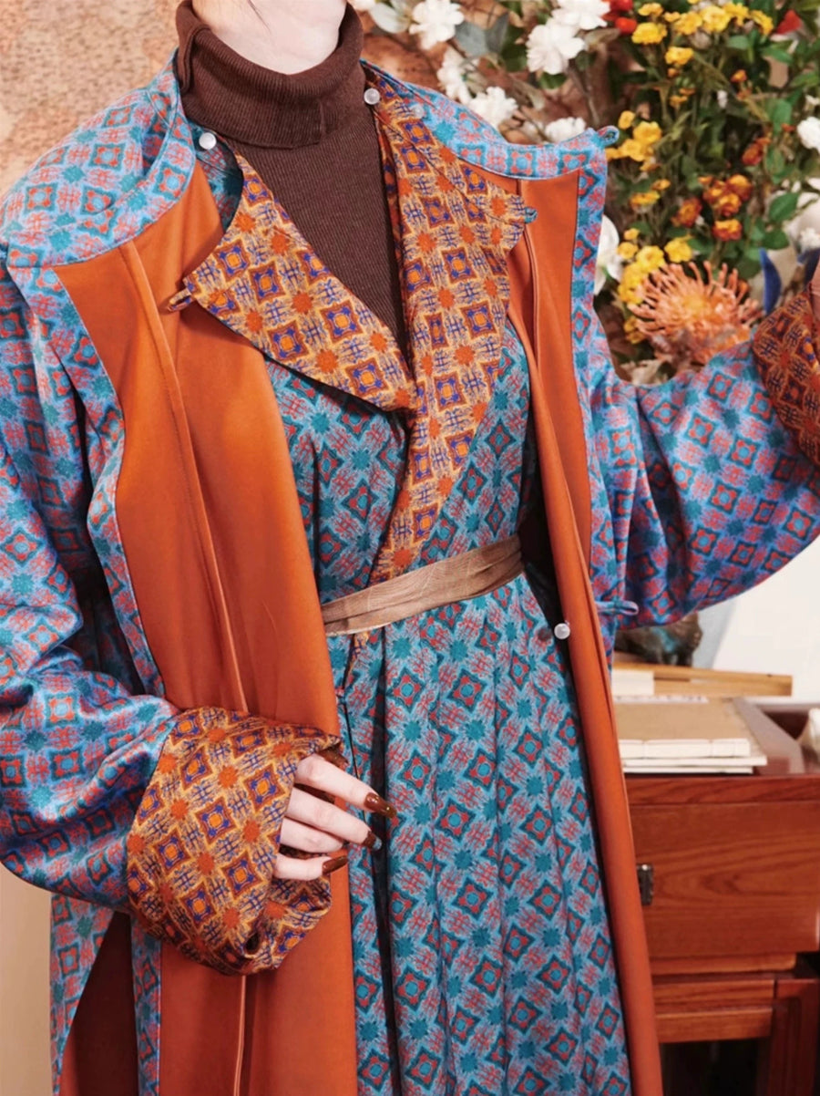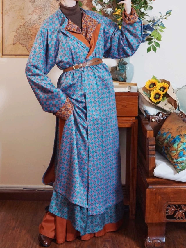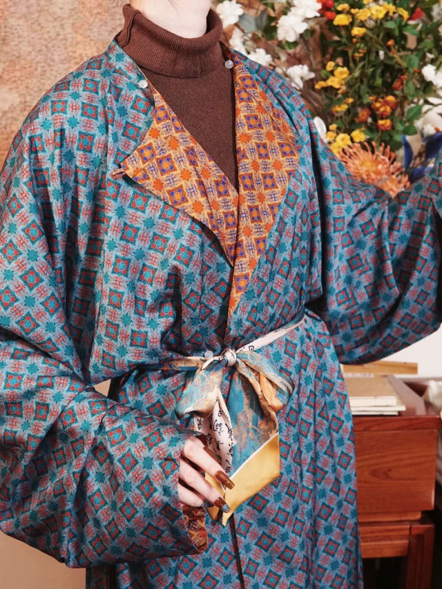 Double sided robes for double the outfits! With stunning geometric print inspired by the textiles of the Tang Dynasty, the Yuanlingpao 圆领袍 (round collar robe) is the most simple and comfortable hanfu garment out there!