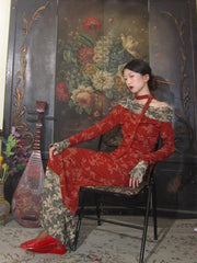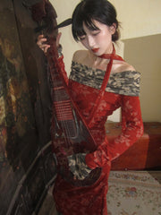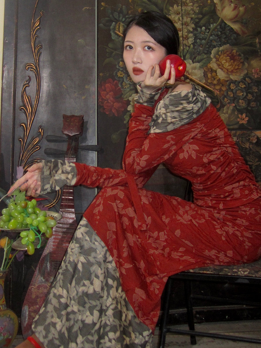 Xiu 锈 Rust New Chinese Style Knitted Jacquard Two-Tone Top & Skirt Set