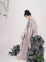 Please hand wash carefully as to not ruin the embroidery, jewels, or buttons. Please air dry flat or on a hanger. Hand washing and air drying extends the life of your hanfu. Please steam out any wrinkles or iron on lowest setting. Use caution to not melt fabrics.