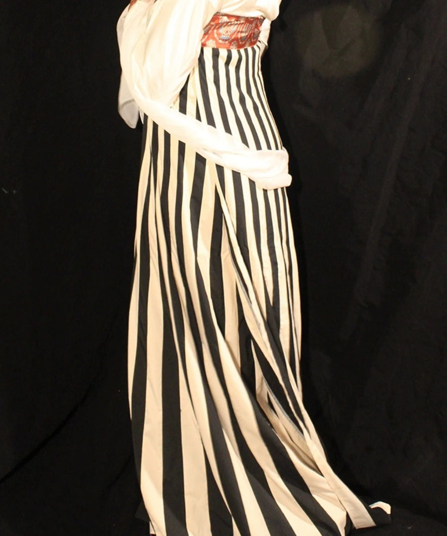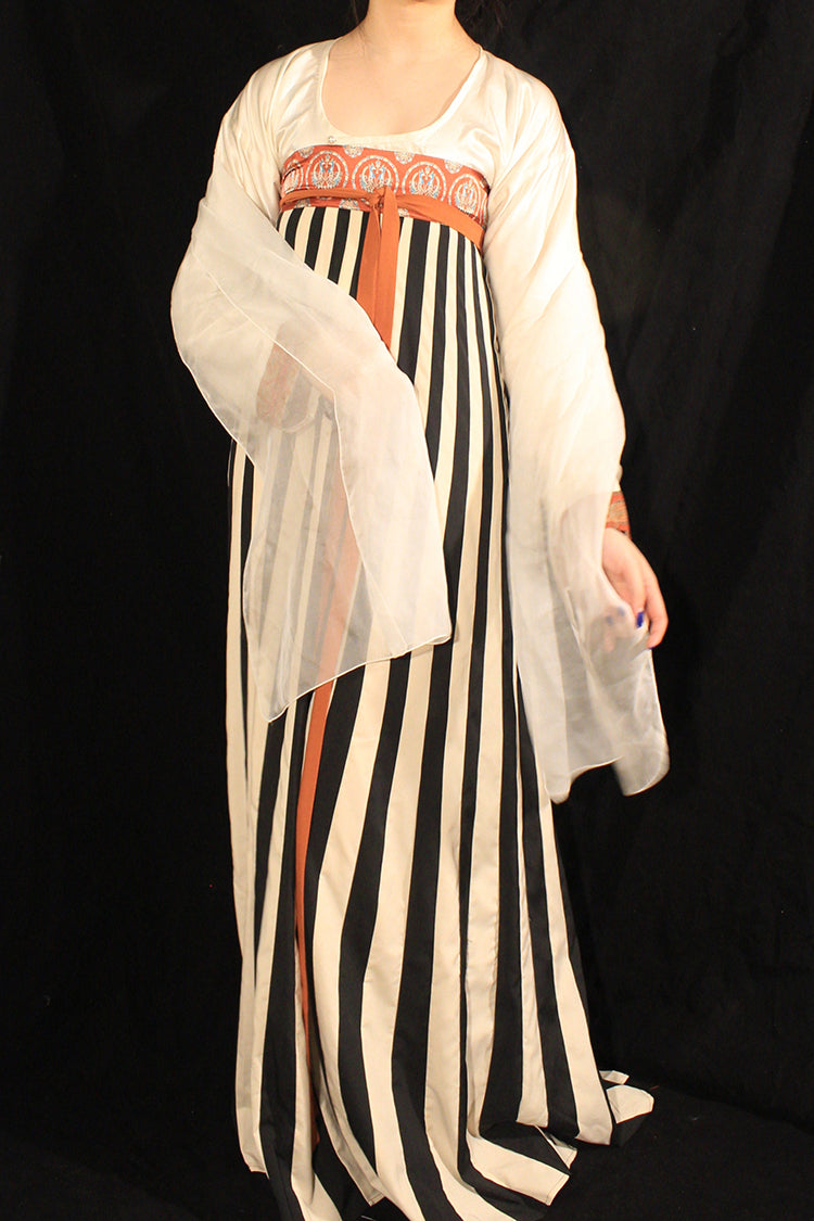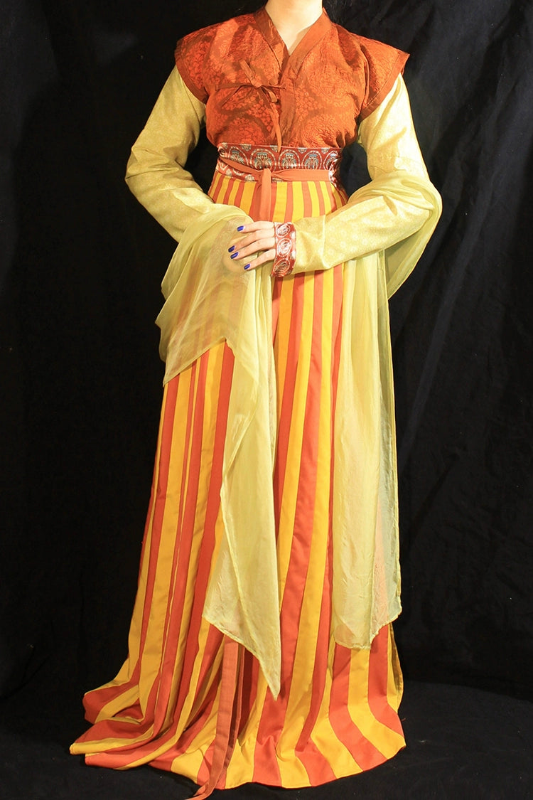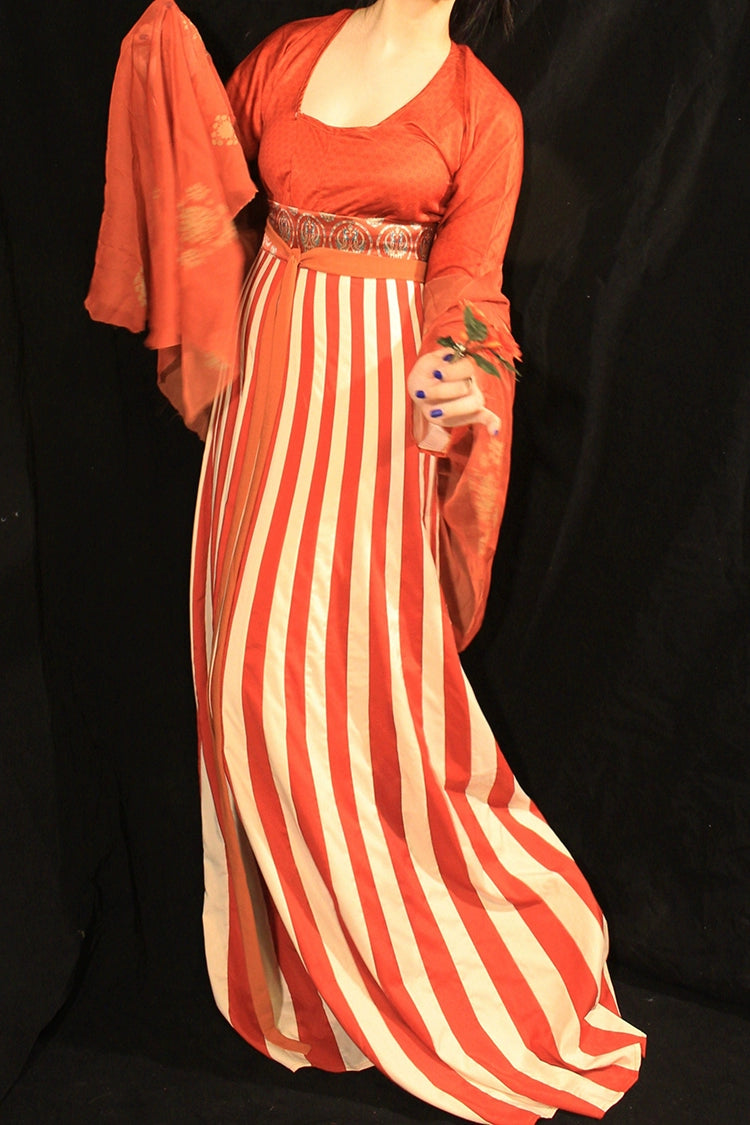 Take on the bold and daring stripes of this poqun 破裙 based on tomb mural paintings from the Early Tang dynasty!