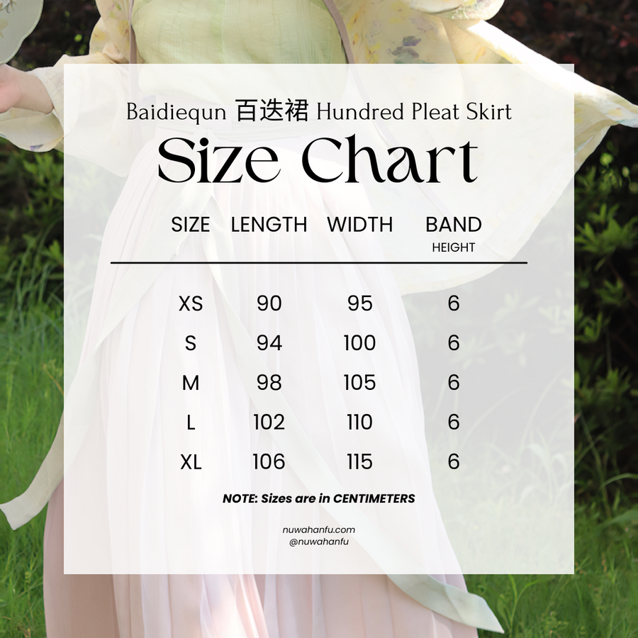 - Baidiequn 百迭裙 (hundred pleat skirt) - custom-dyed chiffon, anti-wrinkle