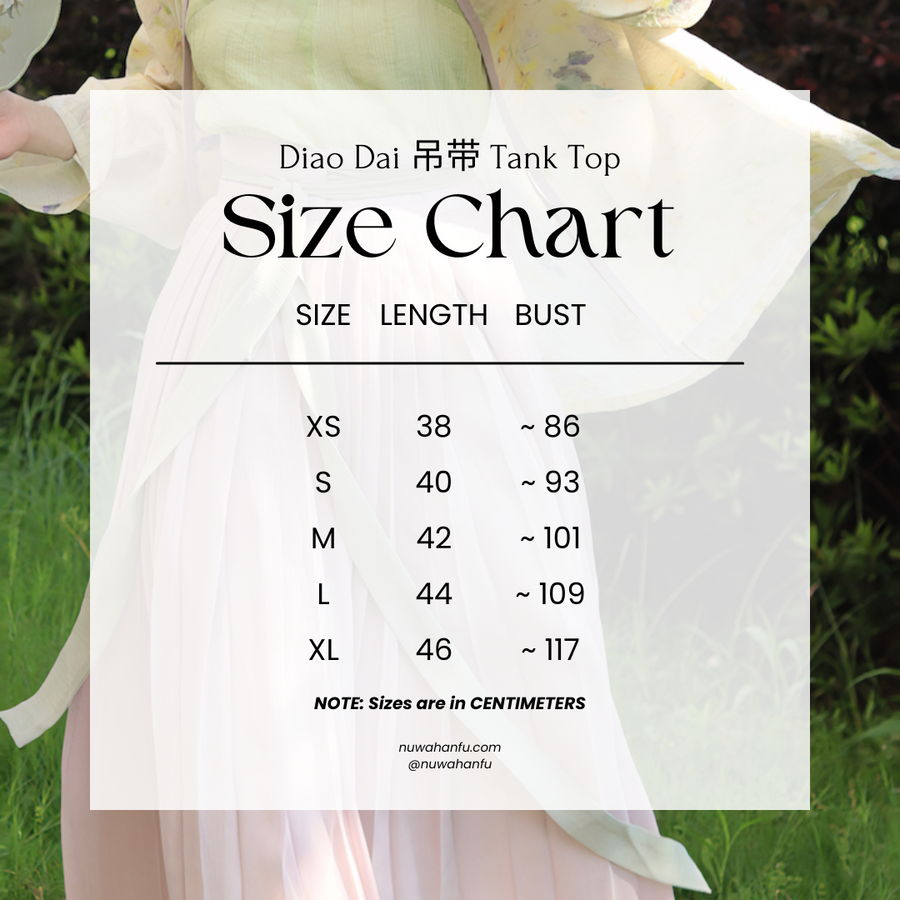 The Diaodai 吊带 (tank top) is inspired by traditional Song Dynasty undergarments and comes in a refreshing light green shade. The perfect base for any outfit, modern or traditional.