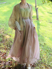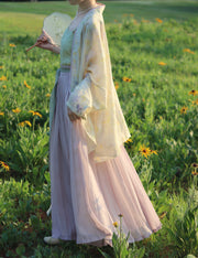 Step into the elegant silhouttes and charming colors of the Song Dynasty with Yan Guangning 烟光凝 Smoke & Light Ruqun Set! A versatile set harmoniously blending traditional cuts and modern color palettes. This beautifully crafted ensemble includes three stunning pieces, each offering endless styling possibilities for today's wardrobe.