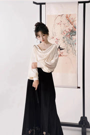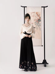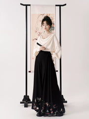 Yimeng Huayu 遗梦花语 A Flower's Language Modernized Ming Mamian Wide Legged Trousers & Drape Top Set