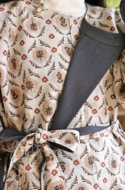 This versatile piece is fully reversible, with one side showcasing a timeless floral pattern. Inner print features red and pink poppies, stylized in a vintage Shanghai wallpaper aesthetic. Golden mushroom-shaped buttons add a touch of refinement, bringing attention to the beautifully detailed collar and placket.