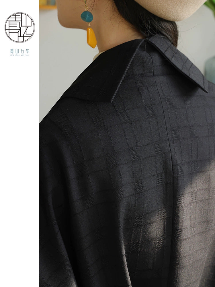 A refreshing blend of history and contemporary fashion, this trench coat inspired by Han dynasty Zhiju 直裾 (straight hem robe) is the perfect option for showing your love of Han on a daily basis. This modern reinterpretation incorporates practical features like side pockets and ruffled sleeves for added flair.