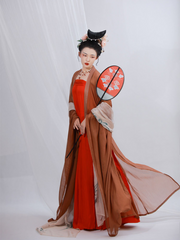 Constructed with a wide band across the chest, the band called hezi 诃子 was thought to be a form of undergarment before gradually being worn over skirts.