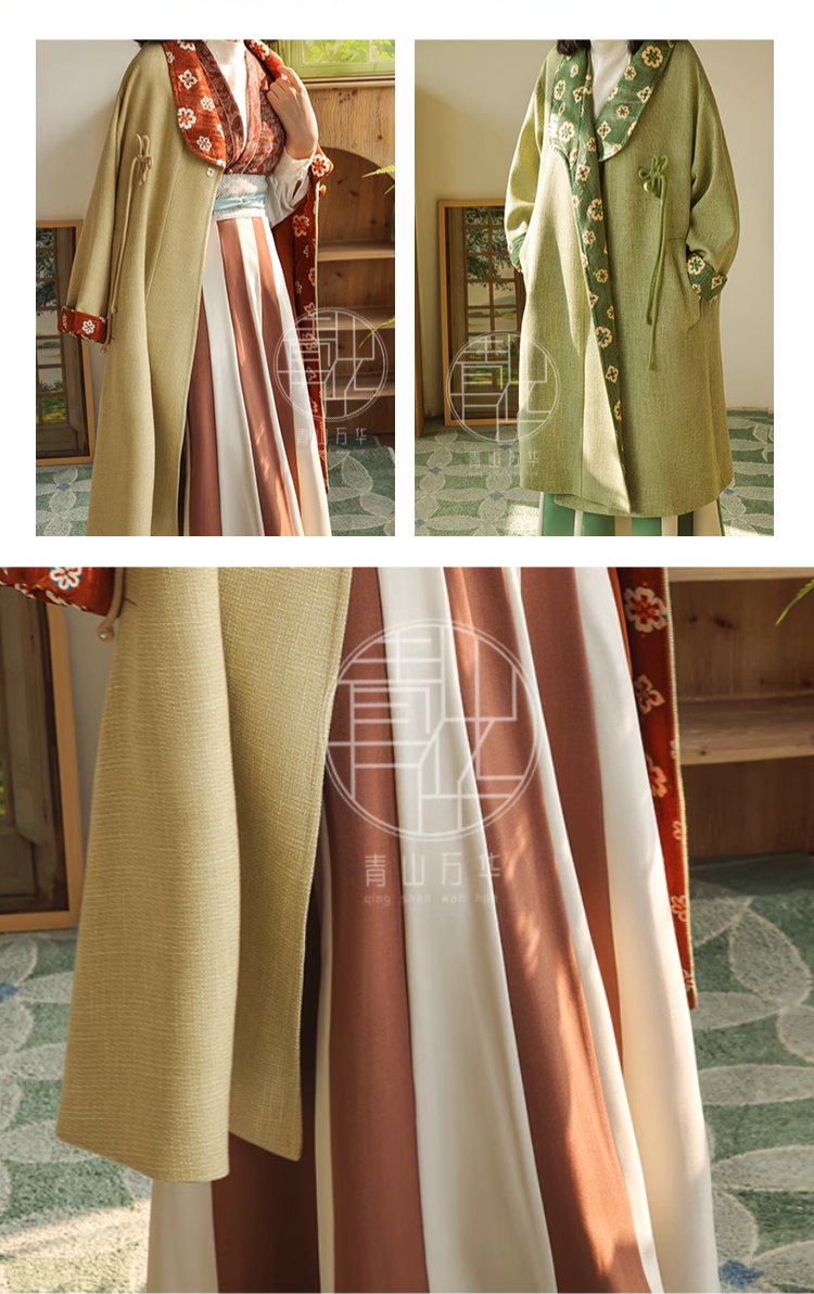 青山万华, or Qingshan Wanhua creates sophisticated and elegant interpretations on classic pieces. From Tang to Ming, they continue to impress with their contemporary designs. Every piece they release is perfect for day-to-night wear, office-ready outfits, and casual styles! One of the top Street Style Hanfu brands currently.