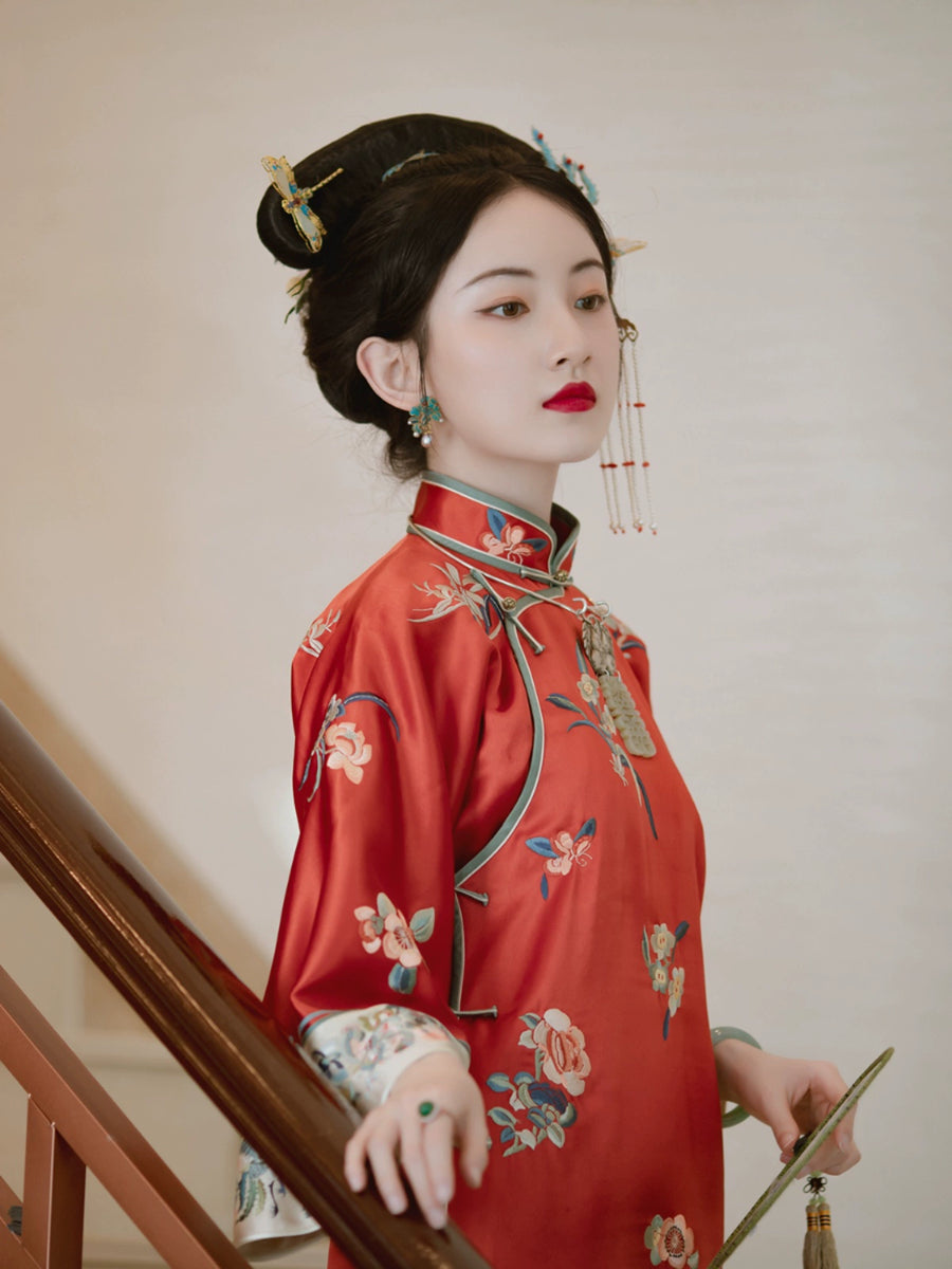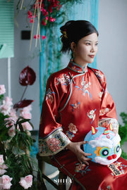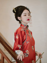 Zheng Fangchun 正芳春 Bright Spring 1920s Mulberry Silk Embroidered Wedding Qipao