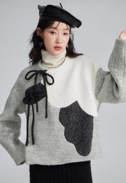Zhuangse Mudan 撞色牡丹 Contrasting Peony Petals New Chinese Style Teddy Wool Qipao Jacket