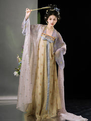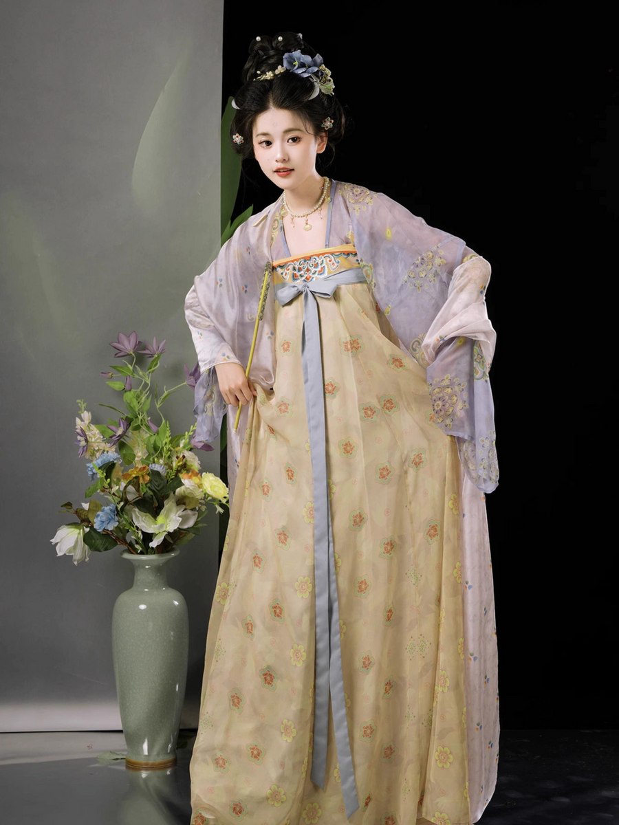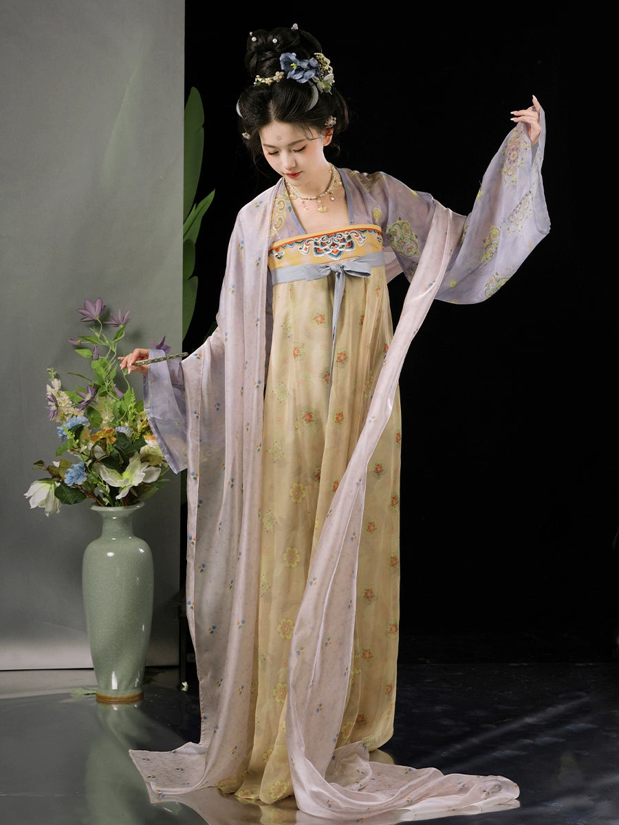 Step into the robes worthy of goddesses with the Zi Xuan 紫萱 Descendent of Nüwa Set! In dreamy pastel lavenders and yellows, this set is reminiscent of a Tang Dynasty noblewoman.