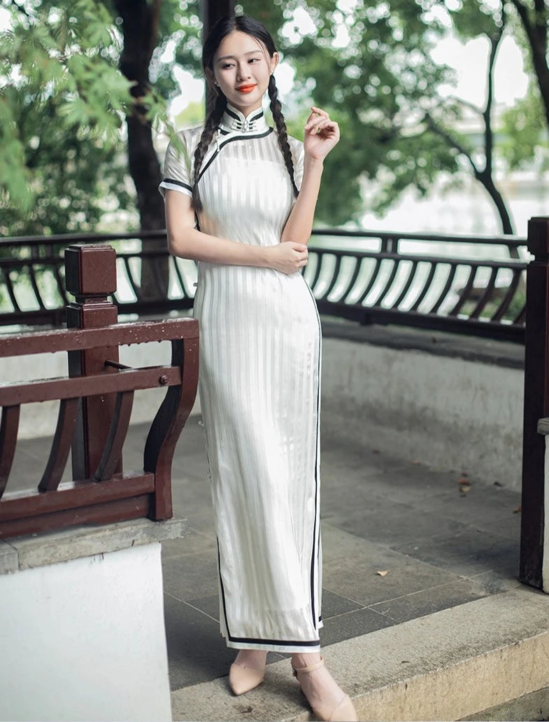 Shanghai 上海 1930s Poster Reproduction Sheer White Striped Qipao