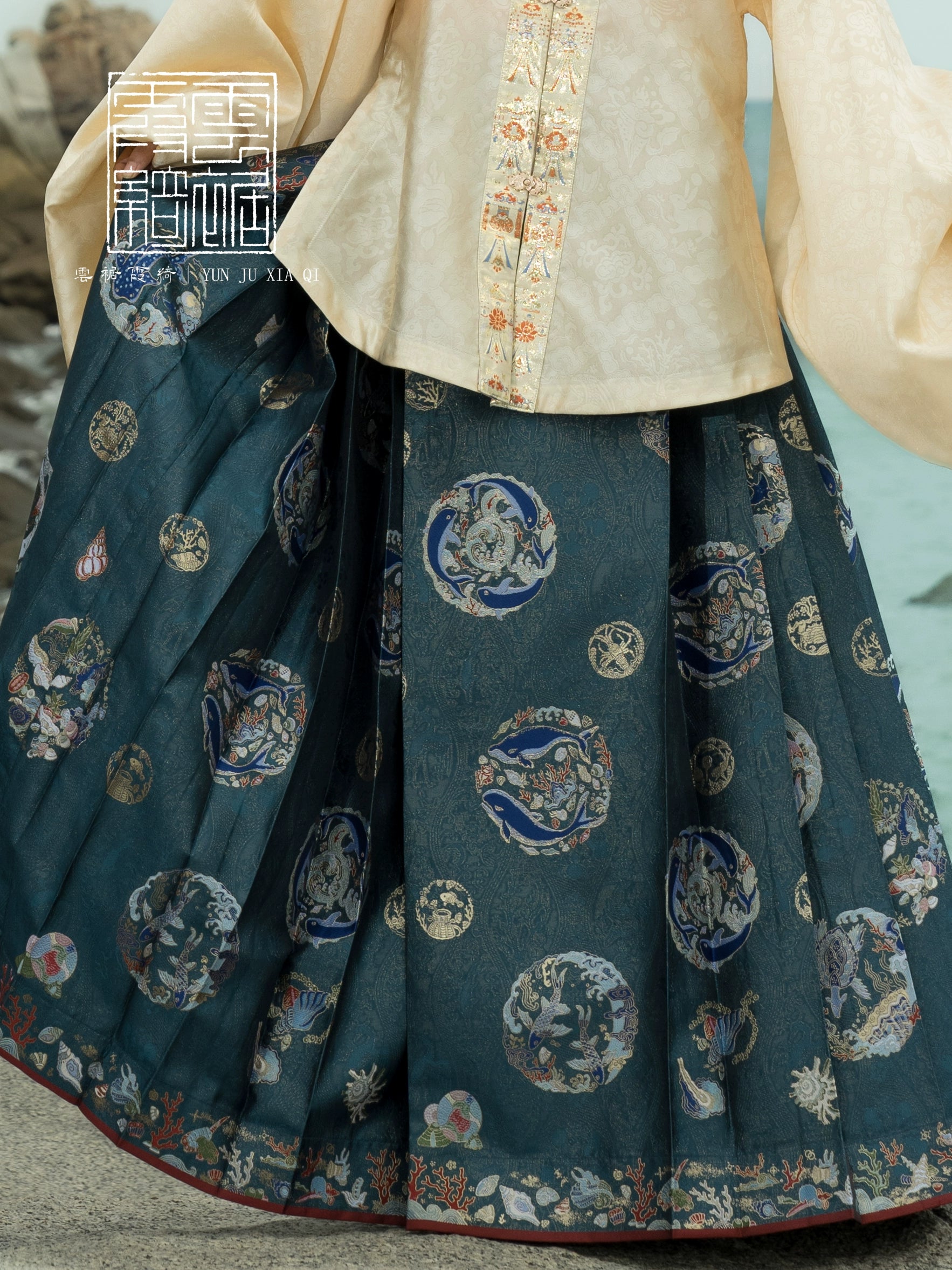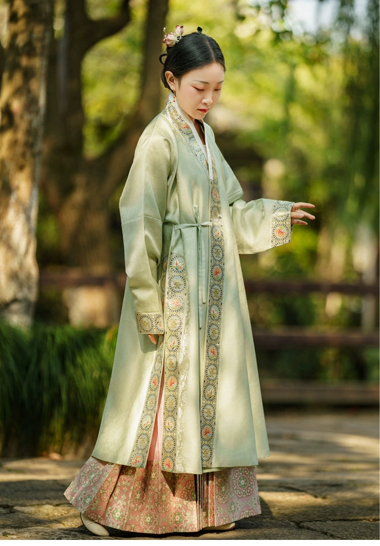 Bai Lu 白鹭 White Egret Ming Dynasty Embroidered Fangling Square Collar Jacket & Mamian Skirt Set