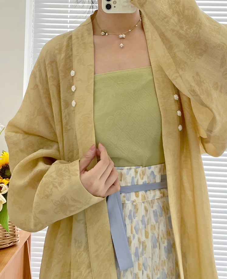Jüzi Qishui 橘子汽水 Orange Soda Modernized Song Dynasty Beizi & Double Layered Trousers Set