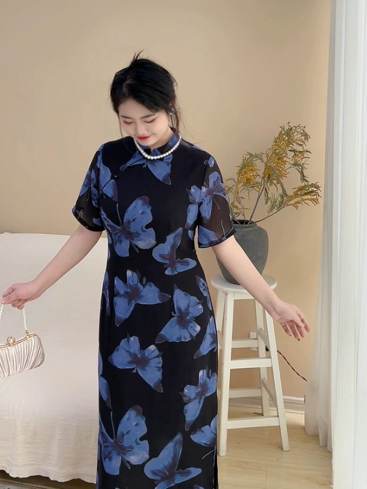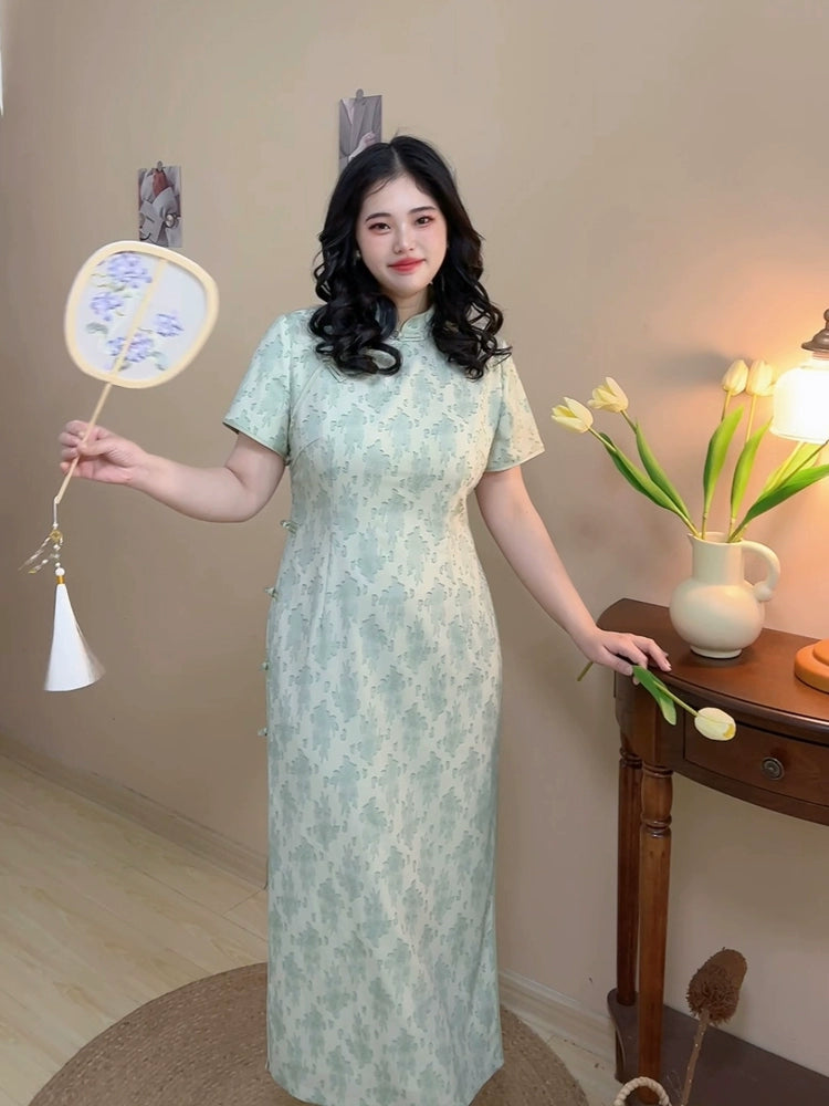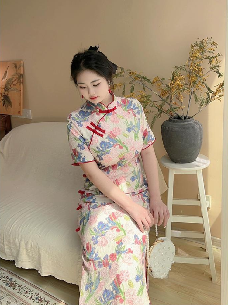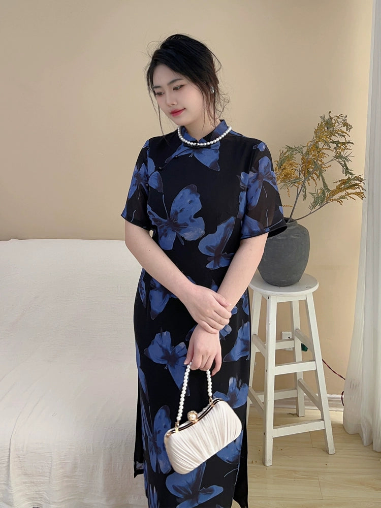 Zhi Lian 之恋 Summer Romance Plus Size Floral Short Sleeve Qipao