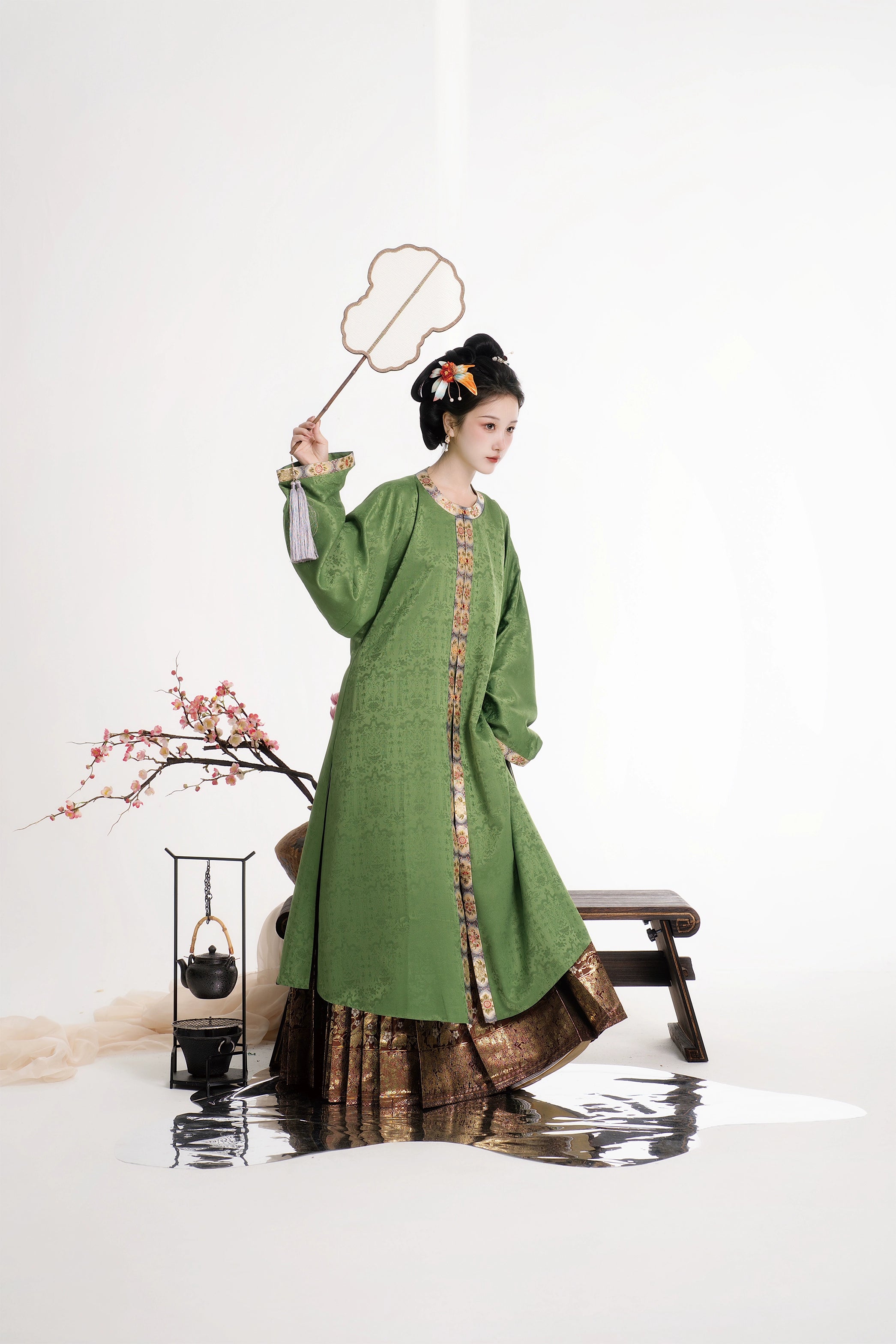 Qing Li 青璃 Bamboo Glaze Tang Dynasty Embroidered Hezi Restoration Qixiong Ruqun Set