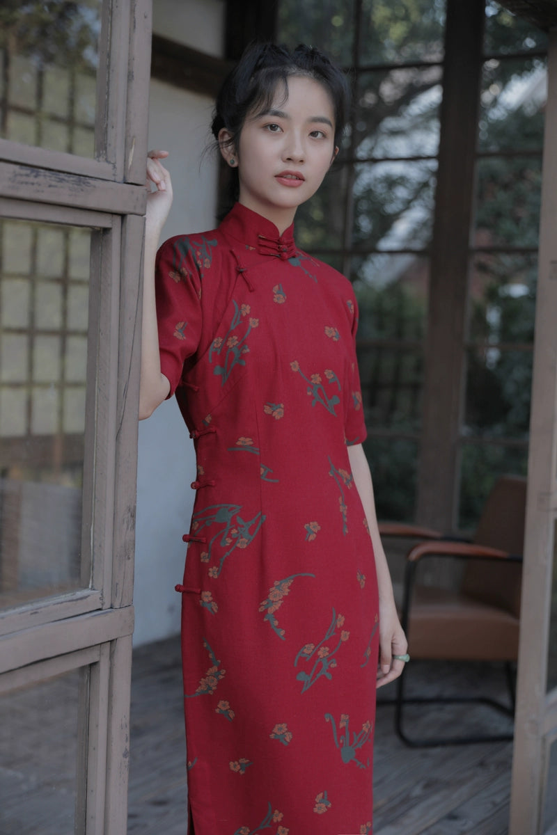 Hong Jinli 红锦鲤 Red Koi Vintage Inspired Plus Size Short Sleeve Qipao