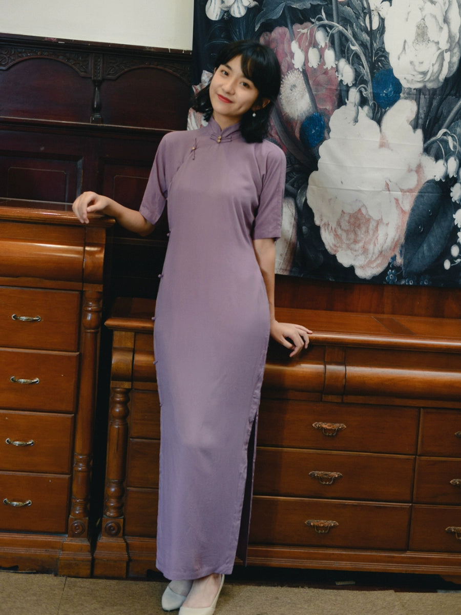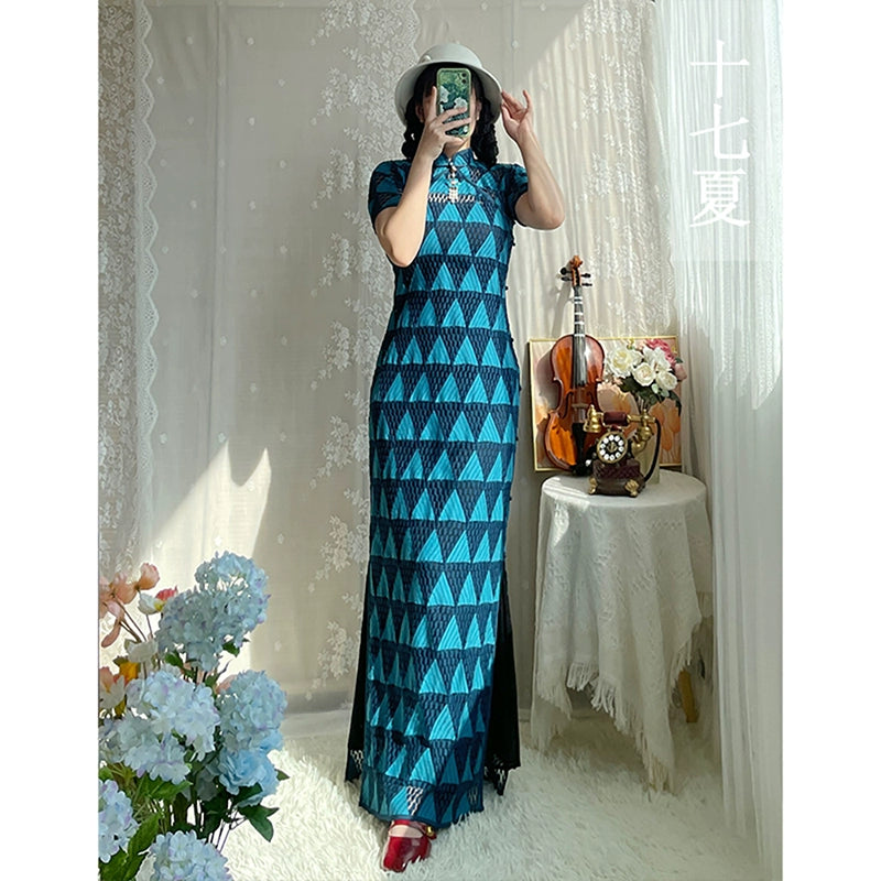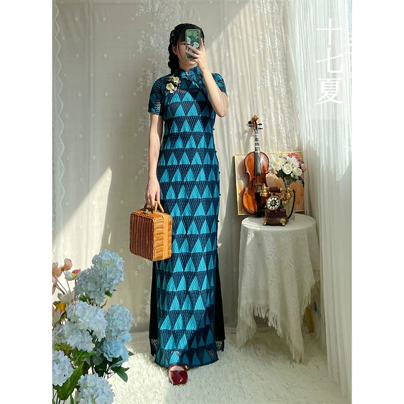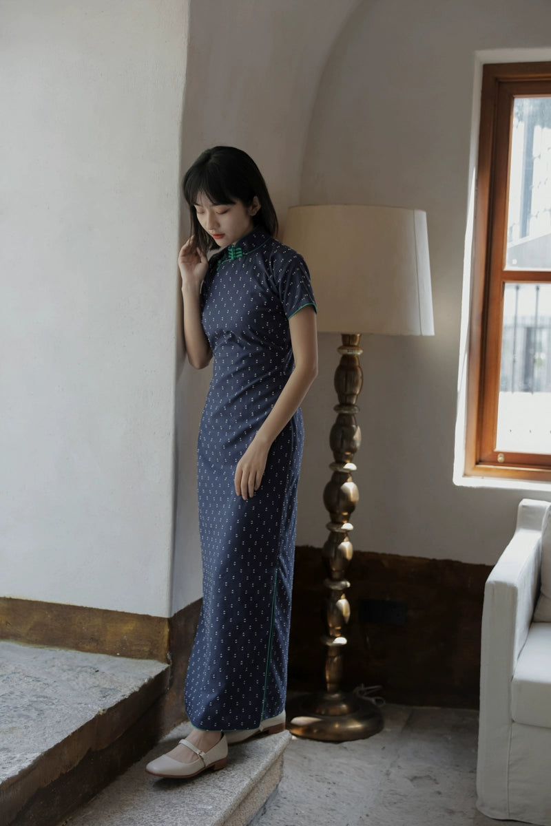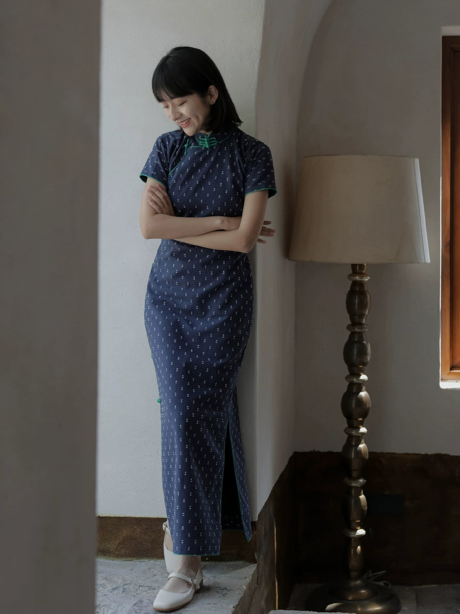 Lan Shan 蓝山 Blue Mountain 1930s Patterned Short Sleeve Qipao